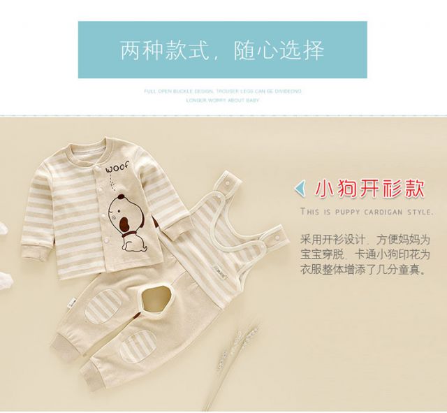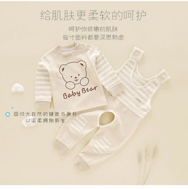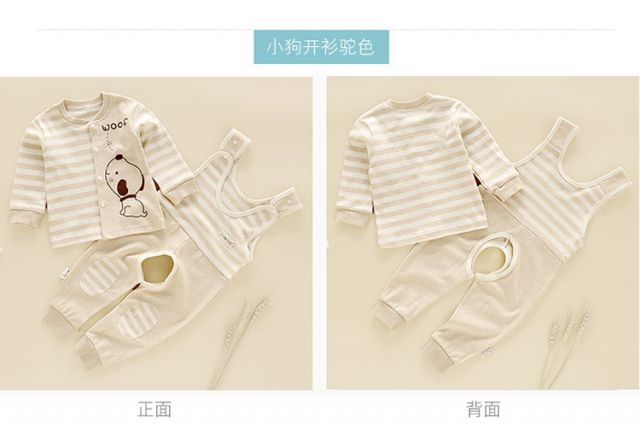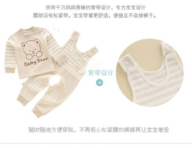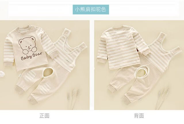 Qiaobei Bear Baby Carrier Set Autumn and Winter Pure Cotton Baby Underwear Newborn Men and Women Autumn Clothes and Autumn Pants Split Two-piece Set Camel Open Buckle Carrier Cover 100cm
