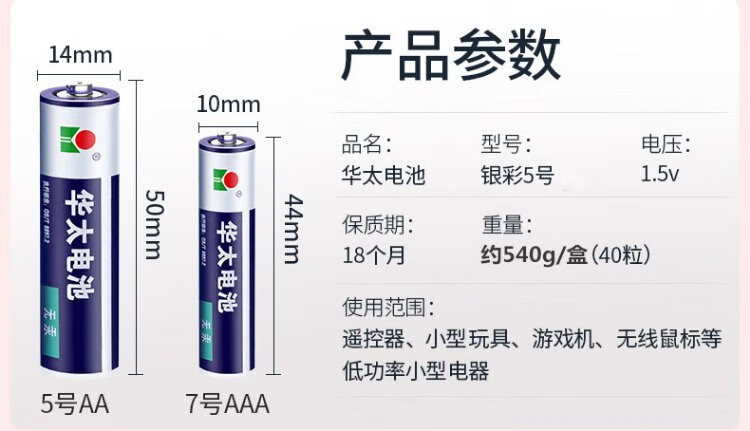 Huatai AA battery AA carbon battery AA battery 40 pieces/box suitable for children's toys/remote controls/wall clocks/alarm clocks/calculators single piece