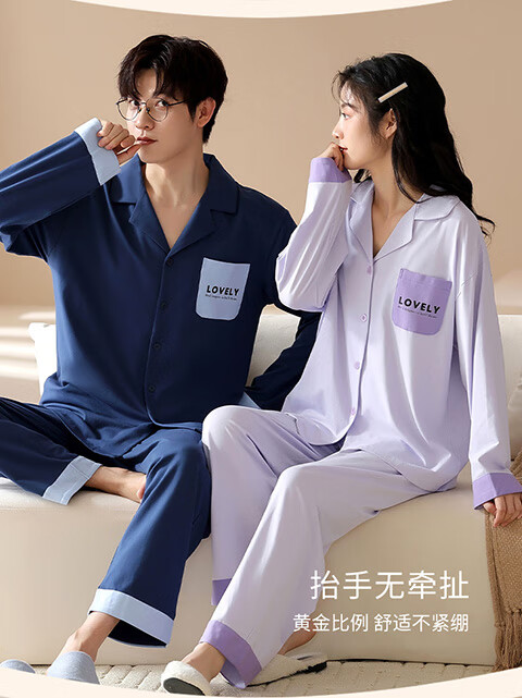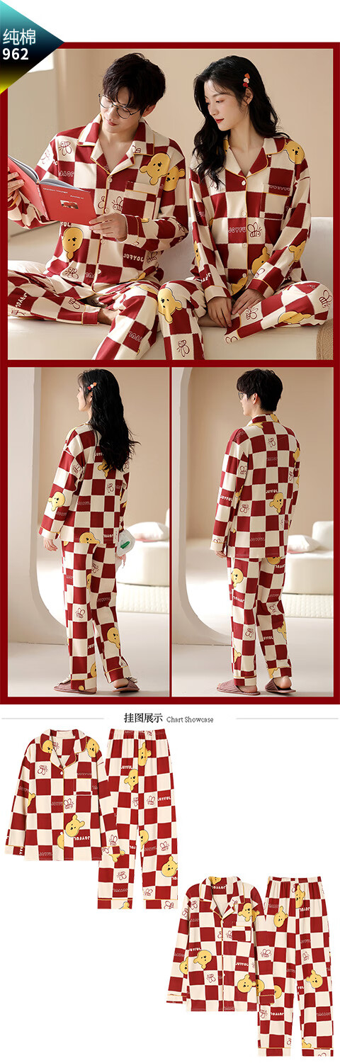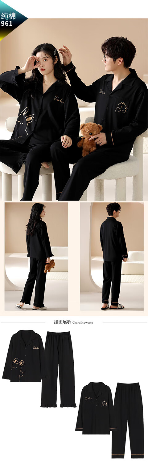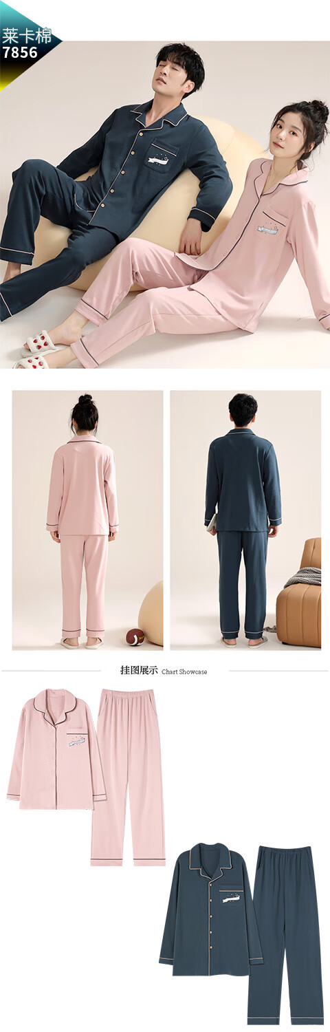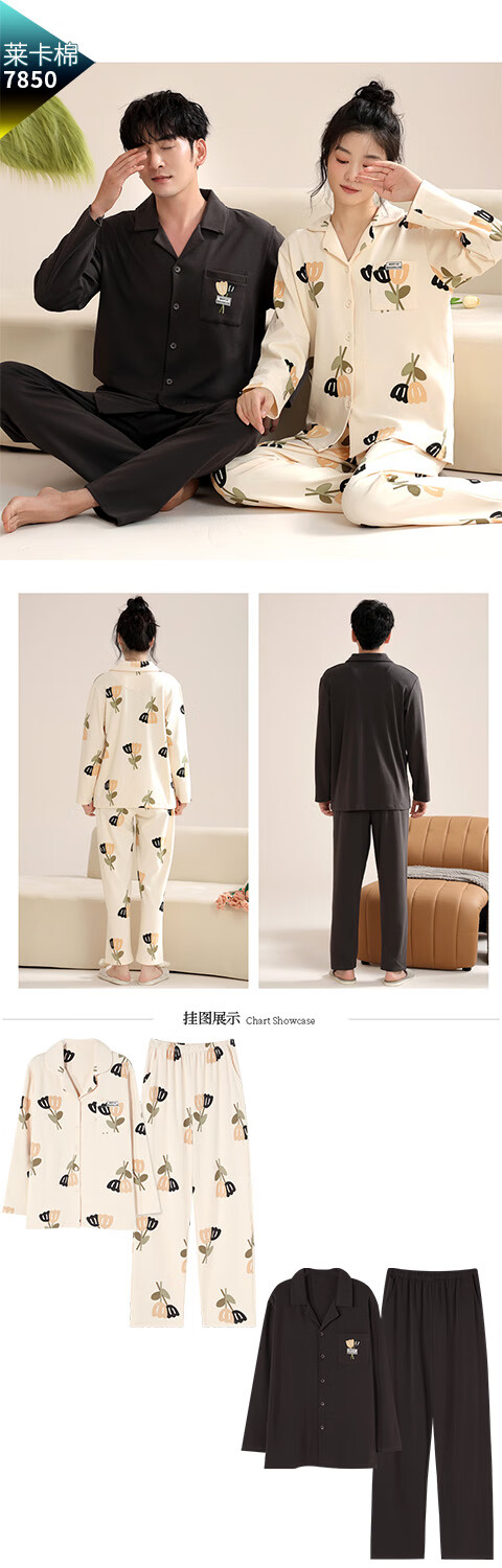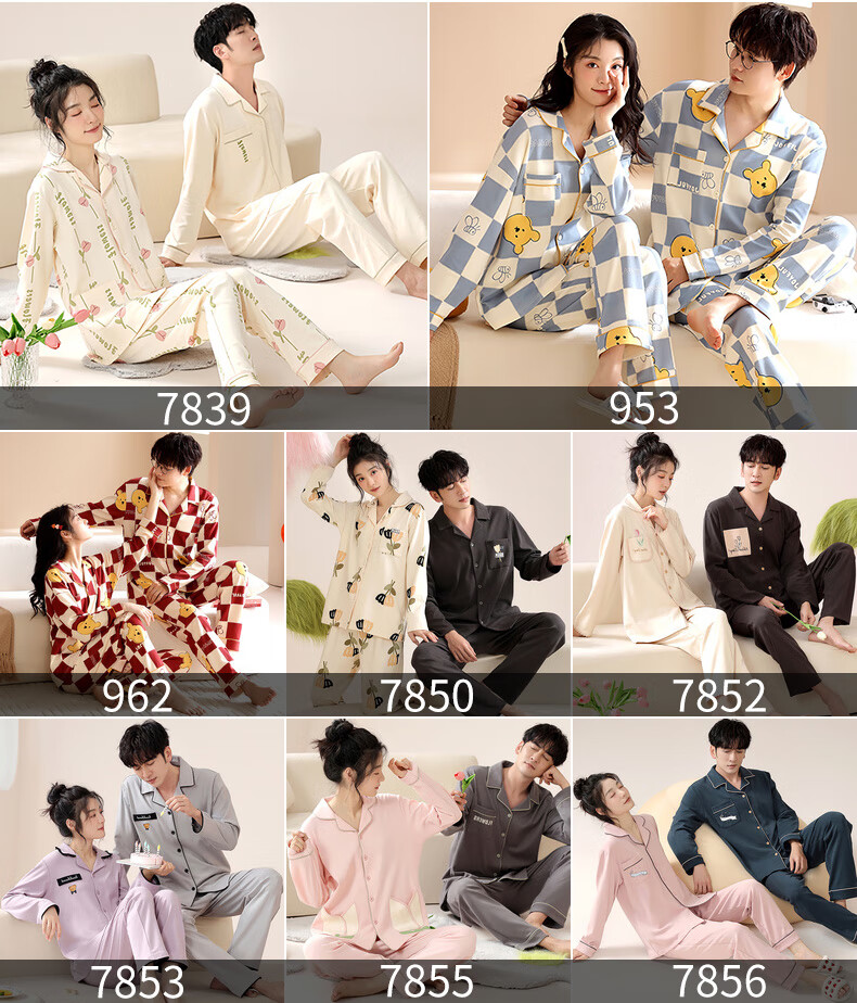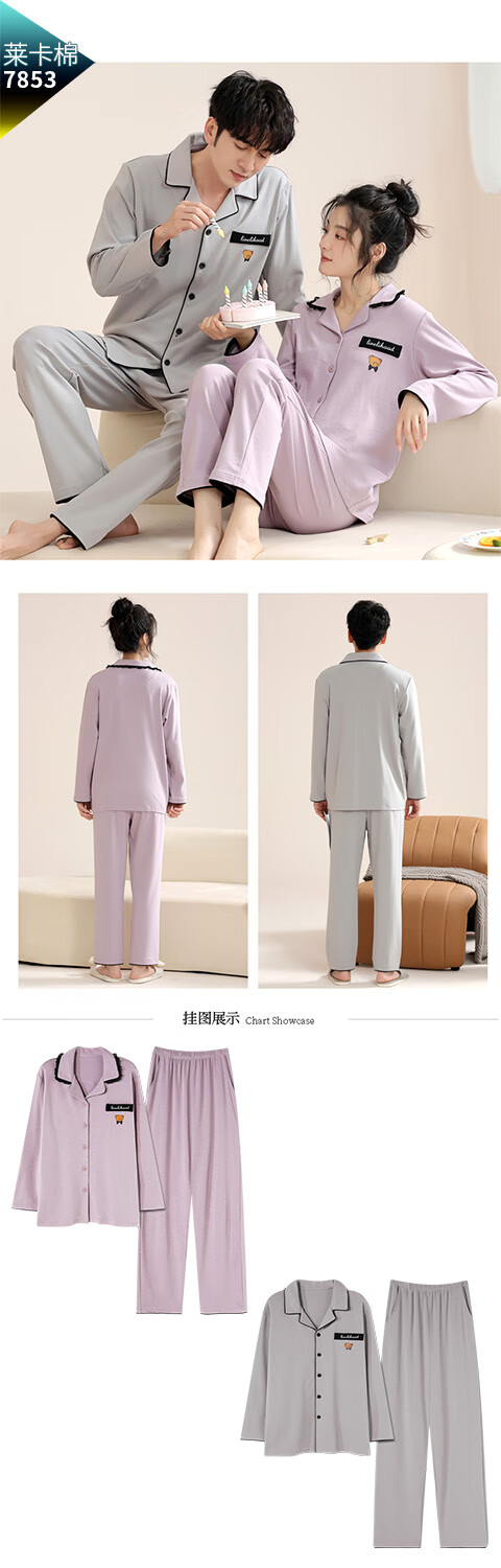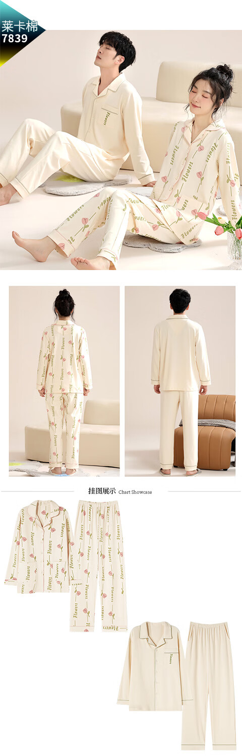 Meiruchun Couple Pajamas Women's Autumn and Winter Lycra Pure Cotton 100% Cotton Long-Sleeved Postpartum Clothing Spring Cute Men's Home Clothing mrcQ7856 High-end Fabric Couple M Female + L Male