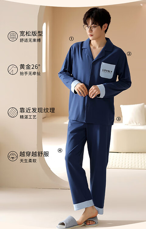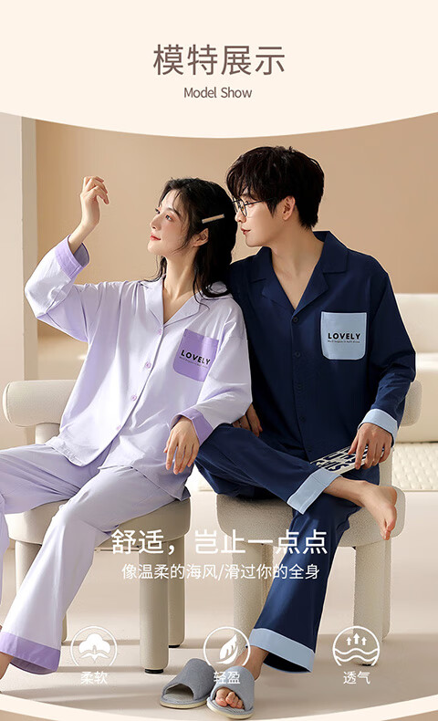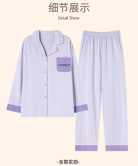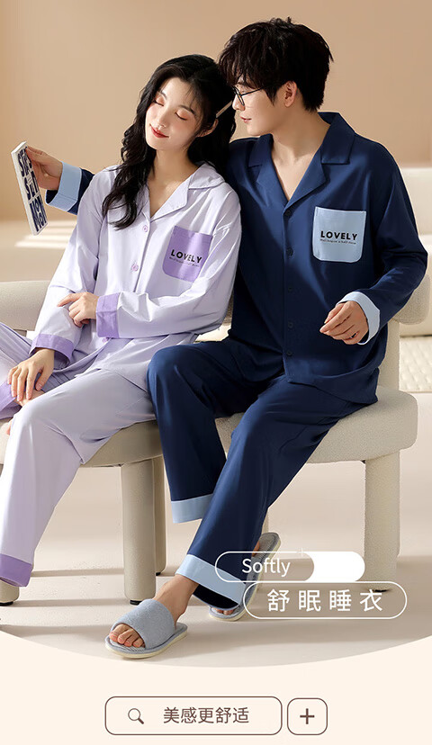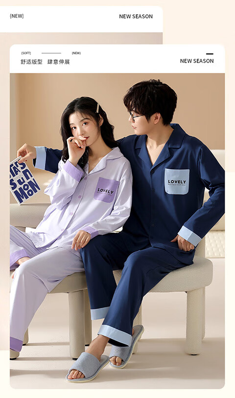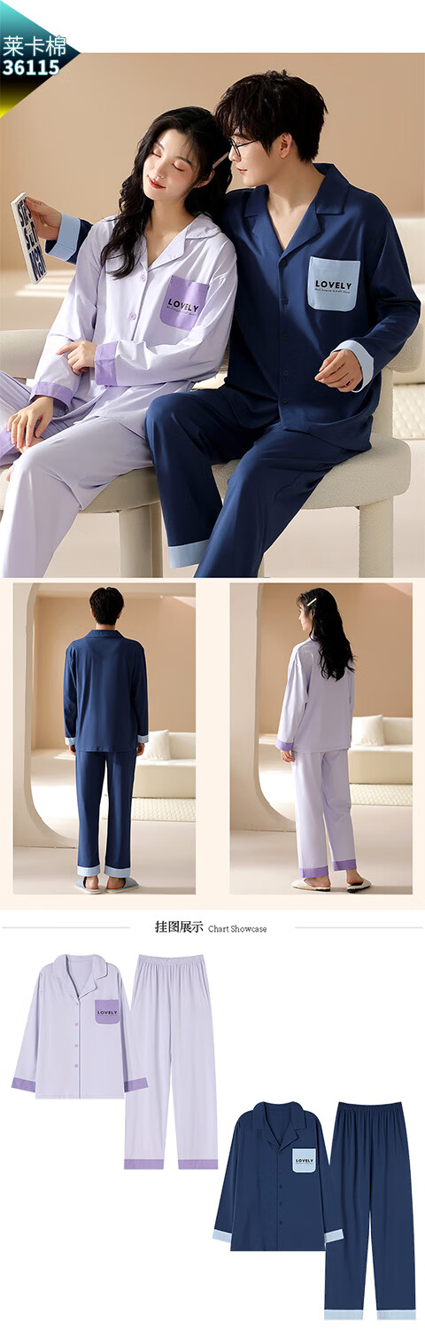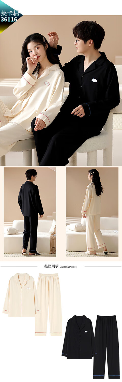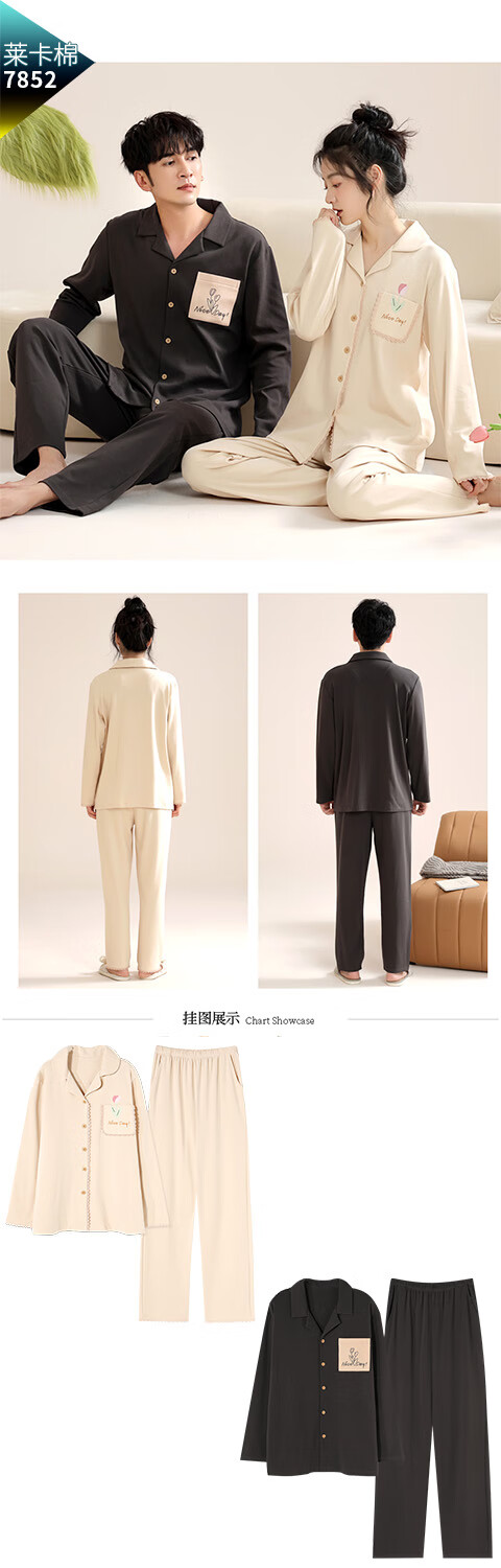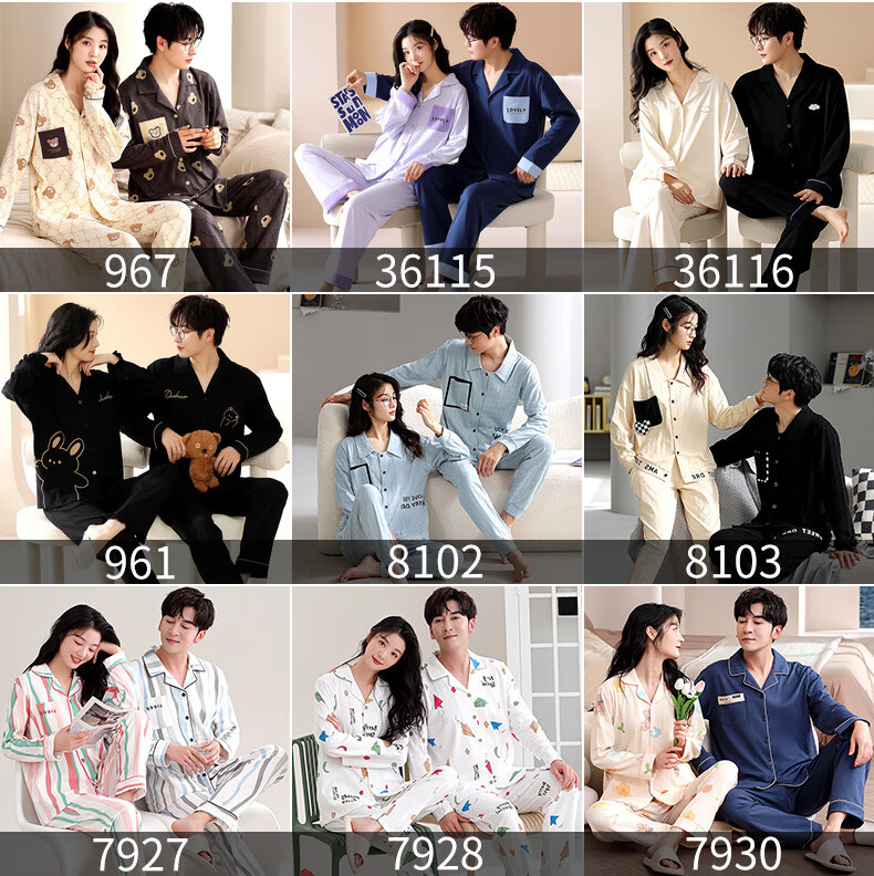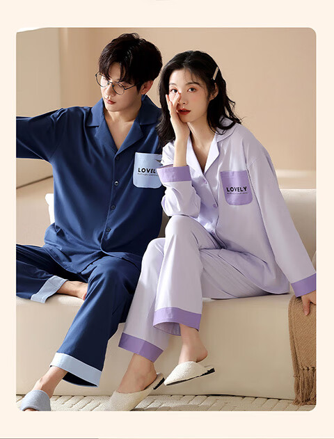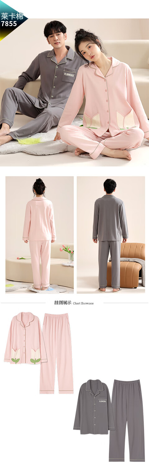 Meiruchun Couple Pajamas Women's Autumn and Winter Lycra Pure Cotton 100% Cotton Long-Sleeved Postpartum Clothing Spring Cute Men's Home Clothing mrcQ7856 High-end Fabric Couple M Female + L Male