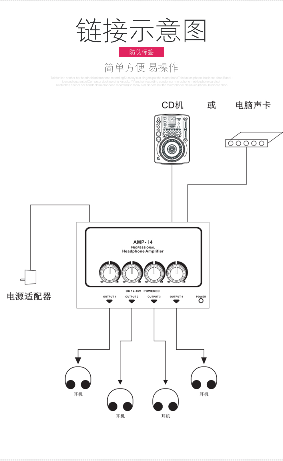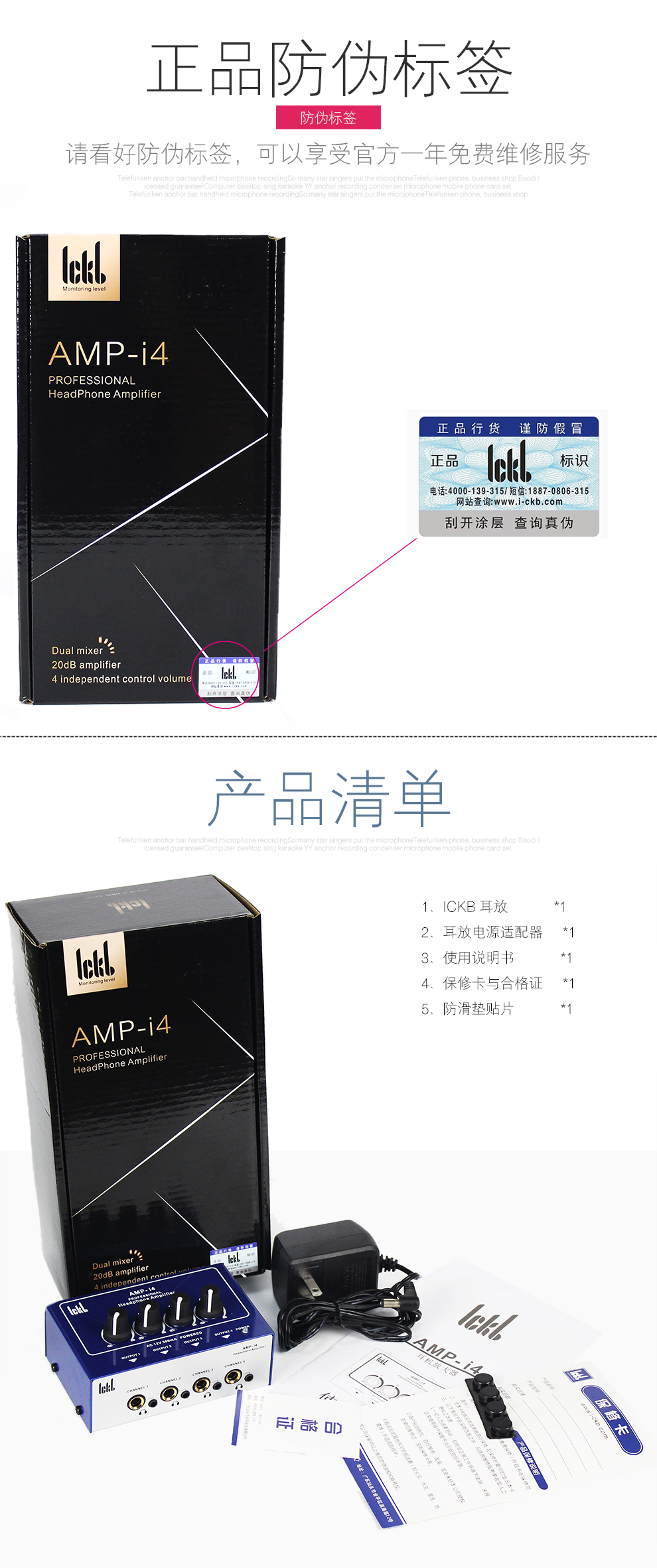 Ickb AMP-i4 headphone amplifier 4-way headphone splitter headphone sound volume amplifier headphone professional recording studio ear splitter AMP-i4 headphone amplifier-standard configuration