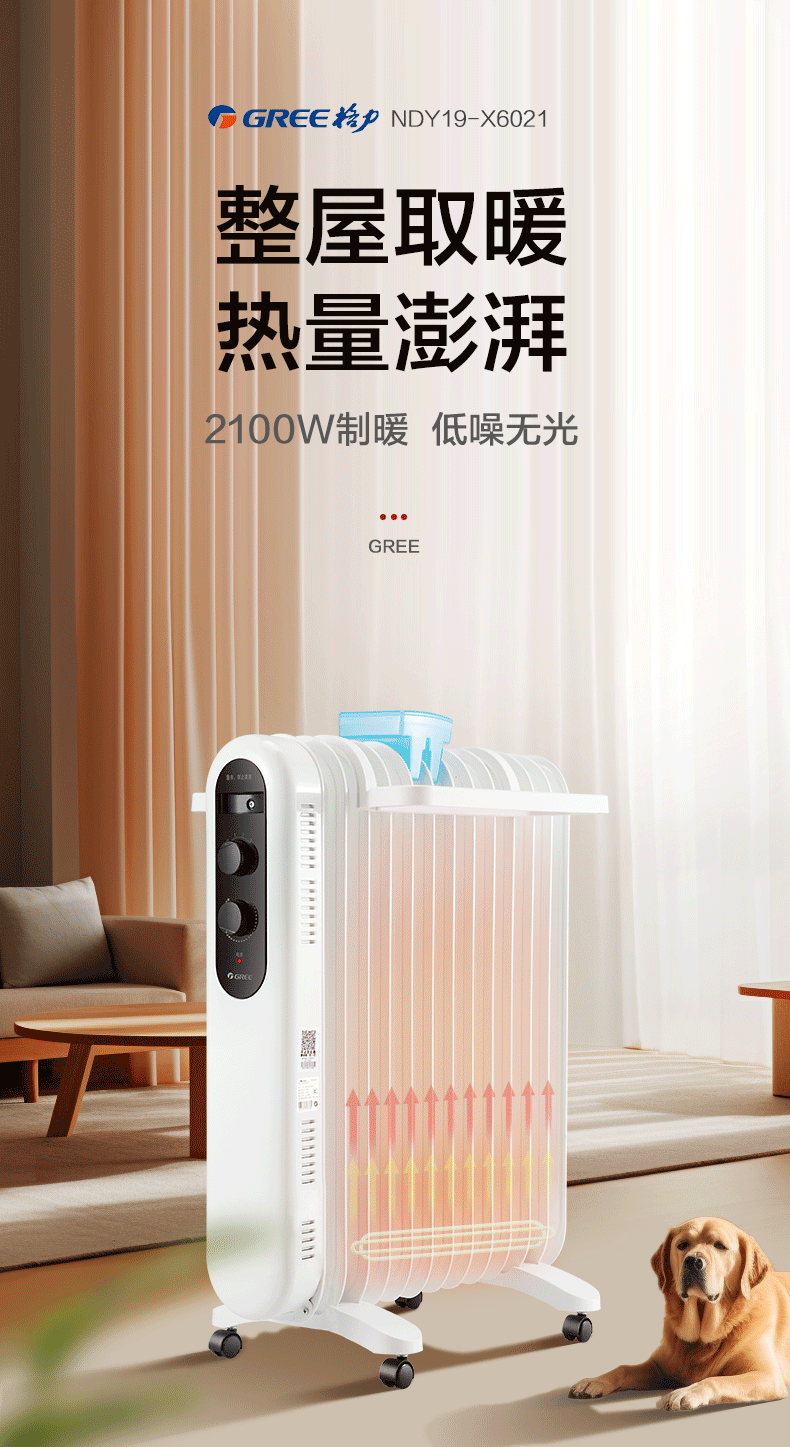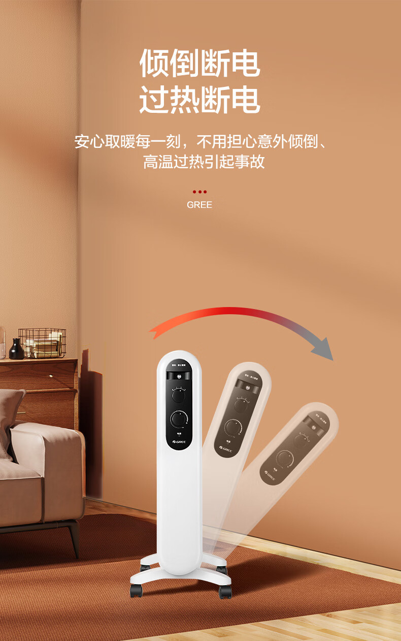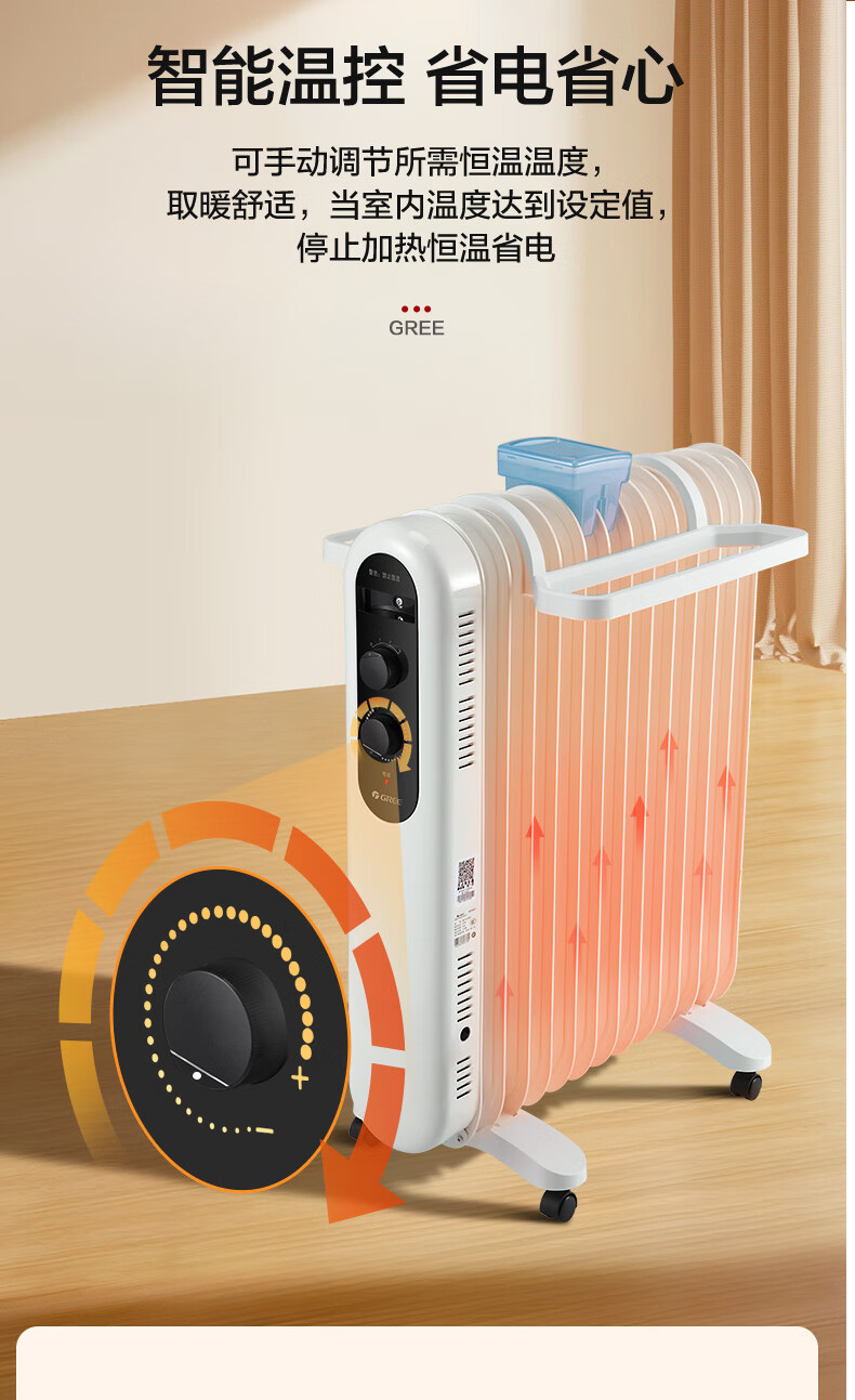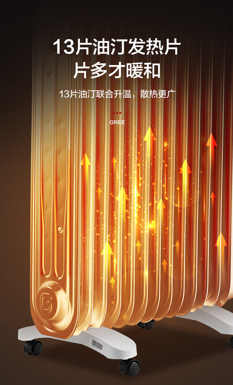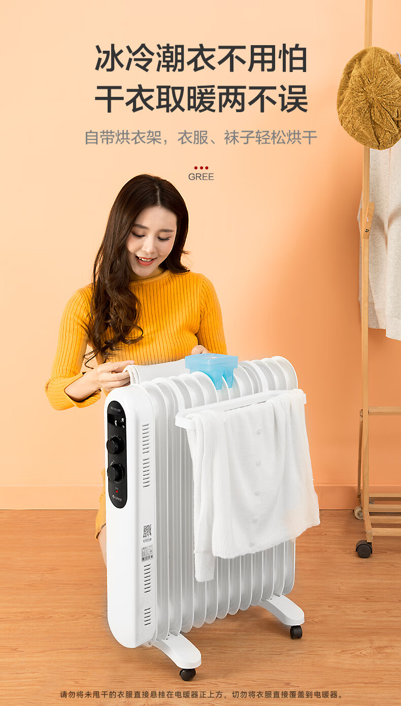 Gree (GREE) heater household electric heater electric oil heater energy-saving dry clothes electric heater living room bedroom mobile floor heating humidification anti-scalding electric radiator 13 pieces electric oil heater NDY19-X6021 (whole house heating)