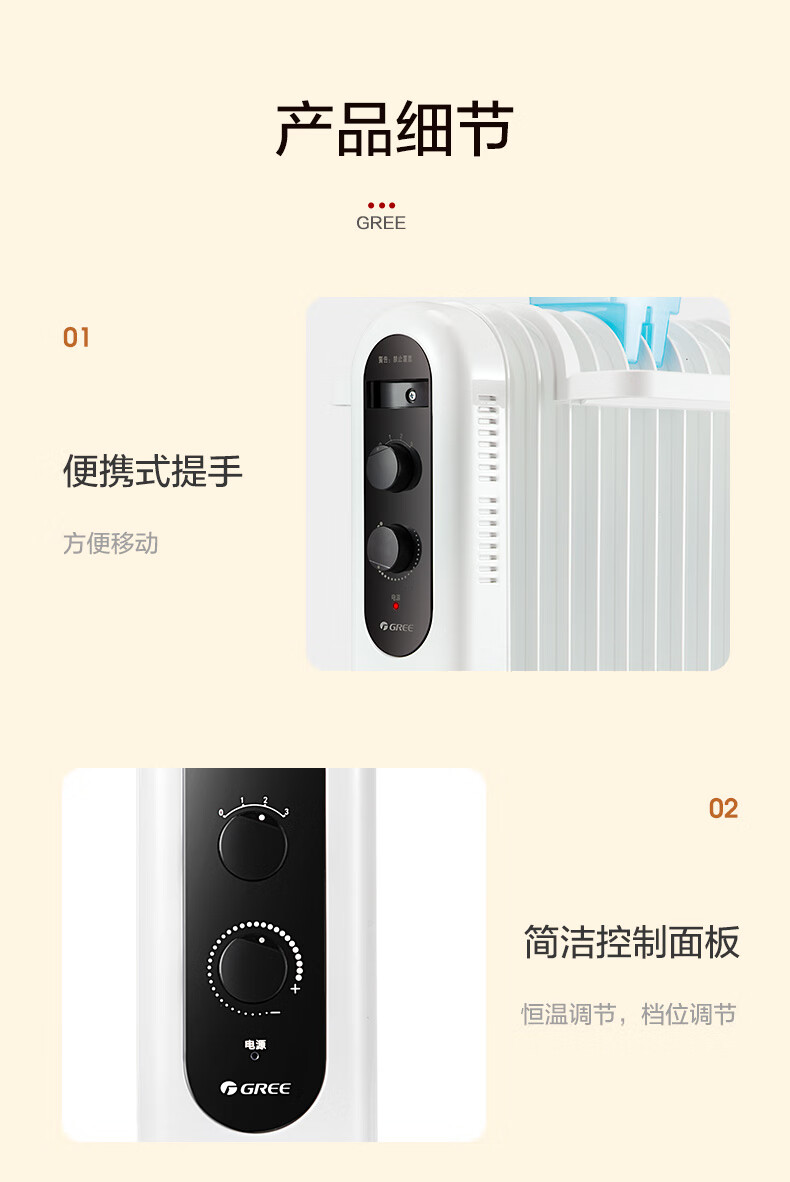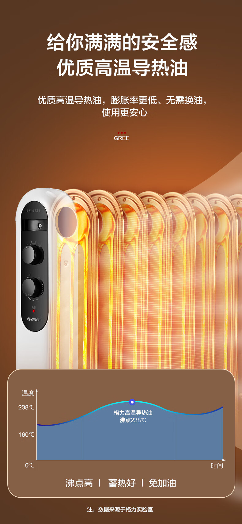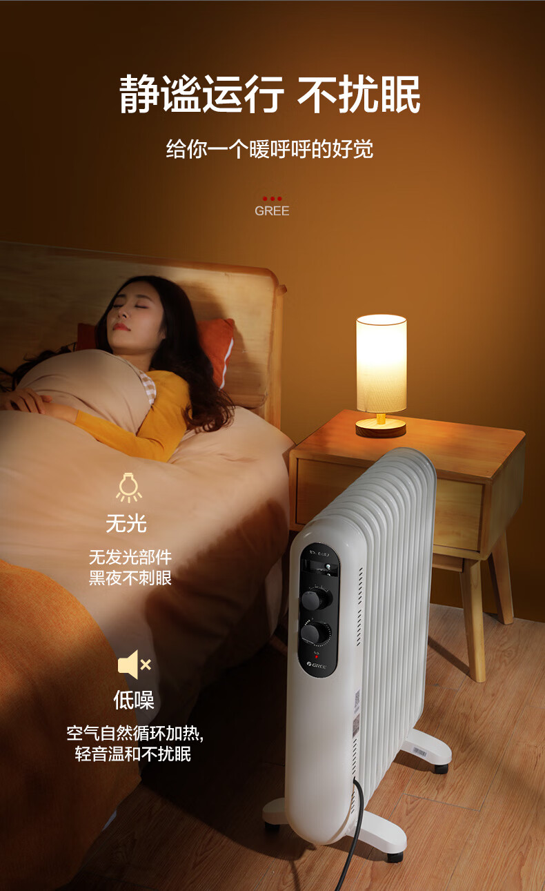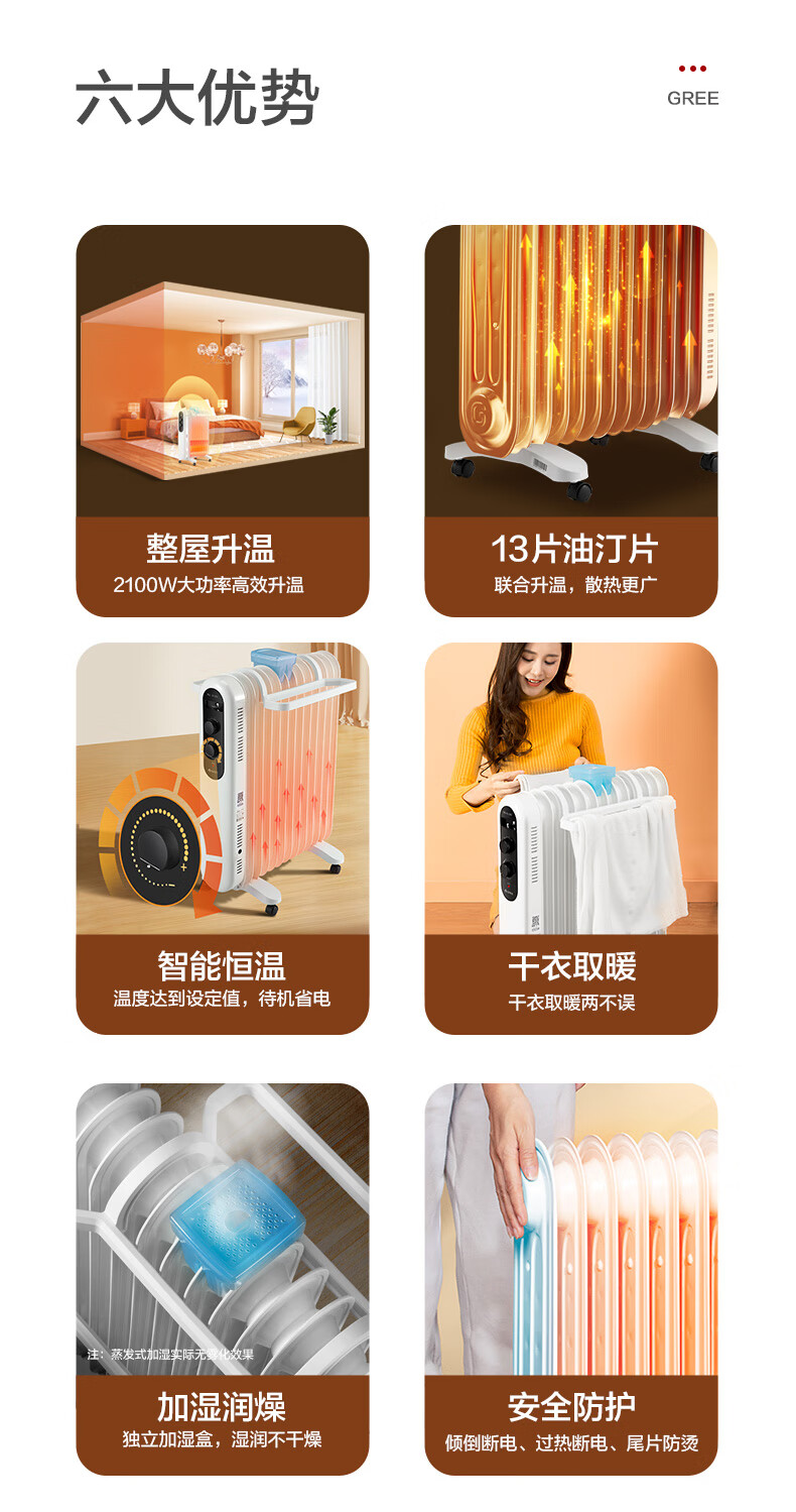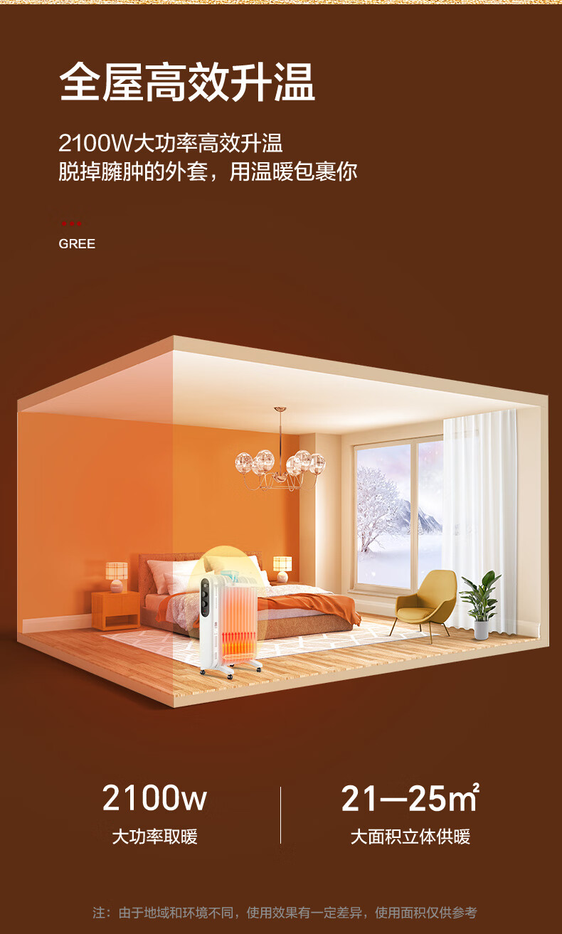 Gree (GREE) heater household electric heater electric oil heater energy-saving dry clothes electric heater living room bedroom mobile floor heating humidification anti-scalding electric radiator 13 pieces electric oil heater NDY19-X6021 (whole house heating)
