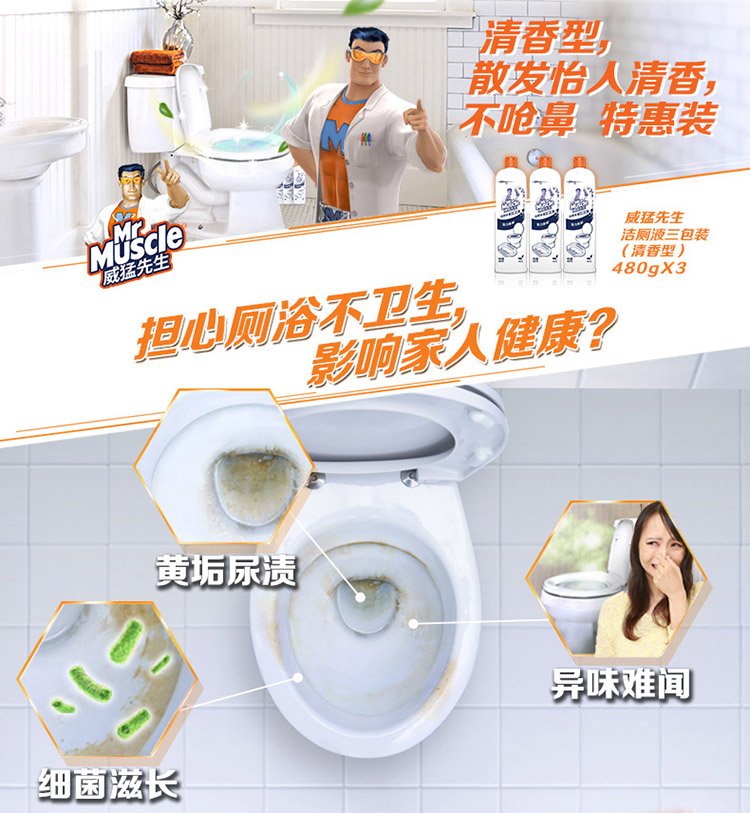Mr Muscle Toilet Cleaning Spirit 480g*3 bottles Toilet Cleaning Agent Toilet Bathroom Toilet Descaling, Stains and Odor Removal