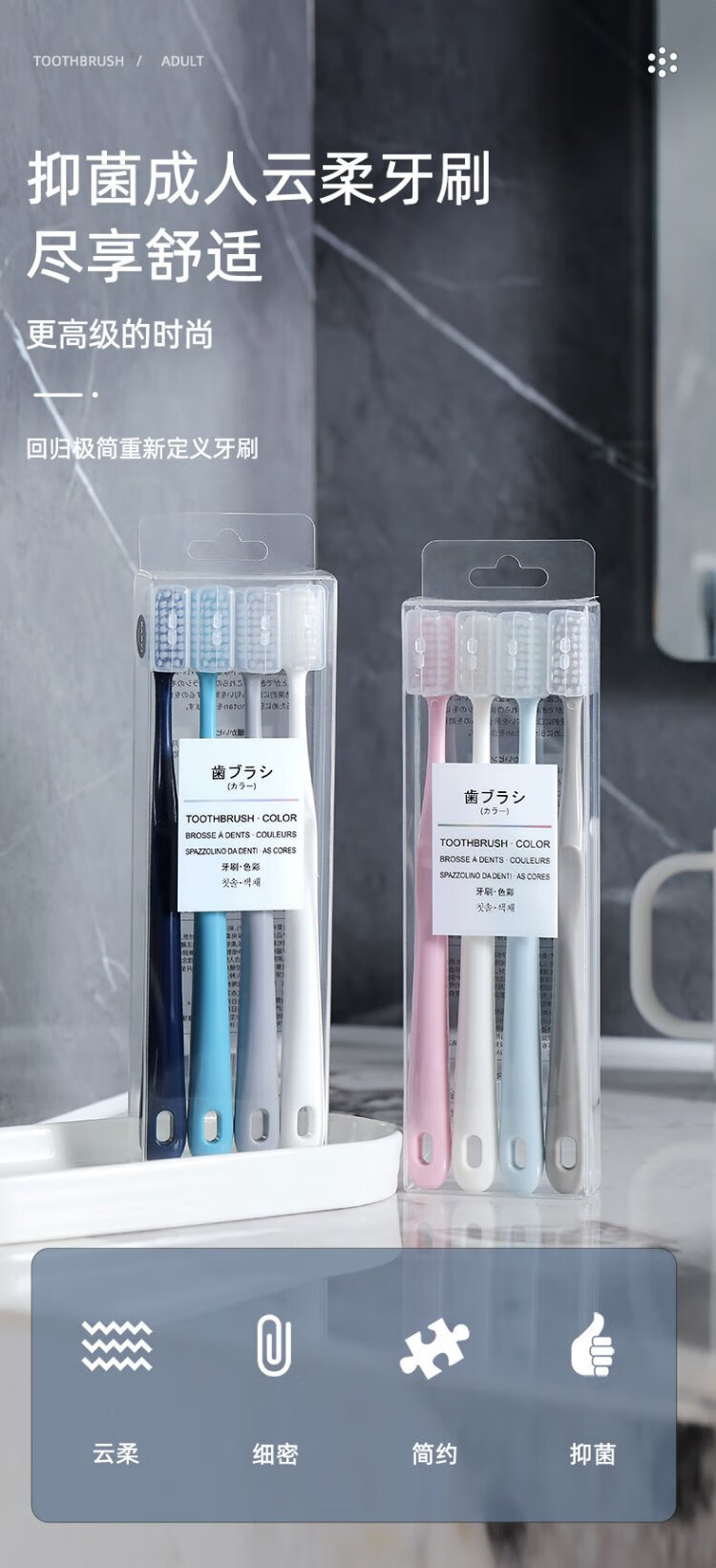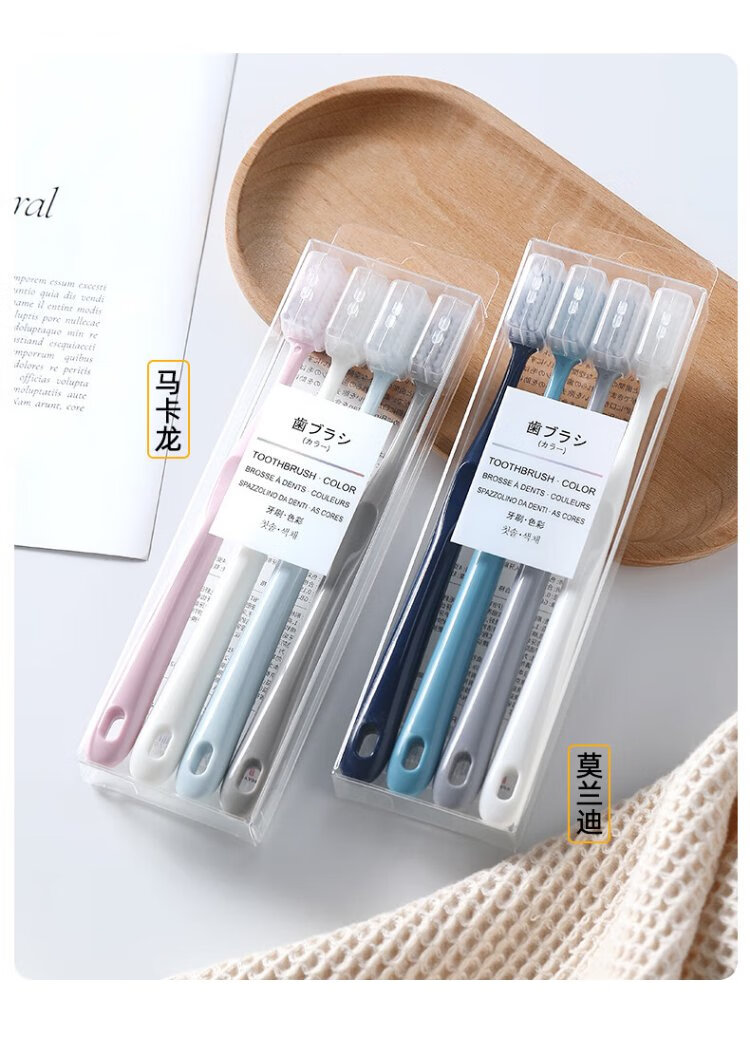 RAOYI soft-bristle gum protection toothbrush, soft-bristled gum protection toothbrush, soft-bristled portable toothbrush for adults, travel toothbrush box, Macaron gum protection 4 pieces, total 8 pieces in hand