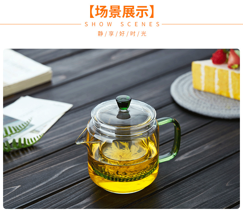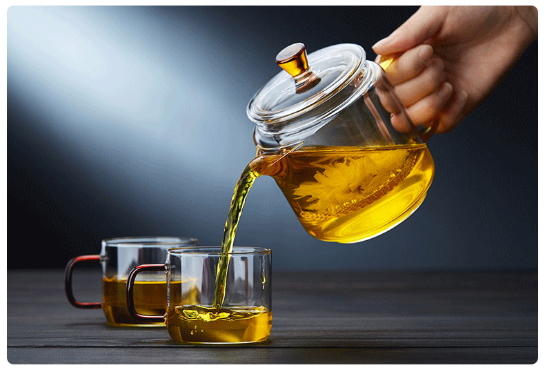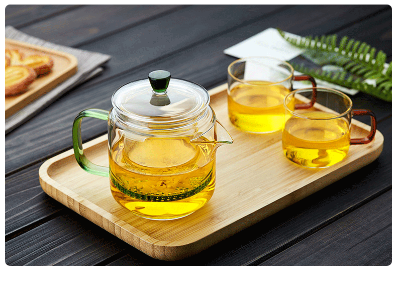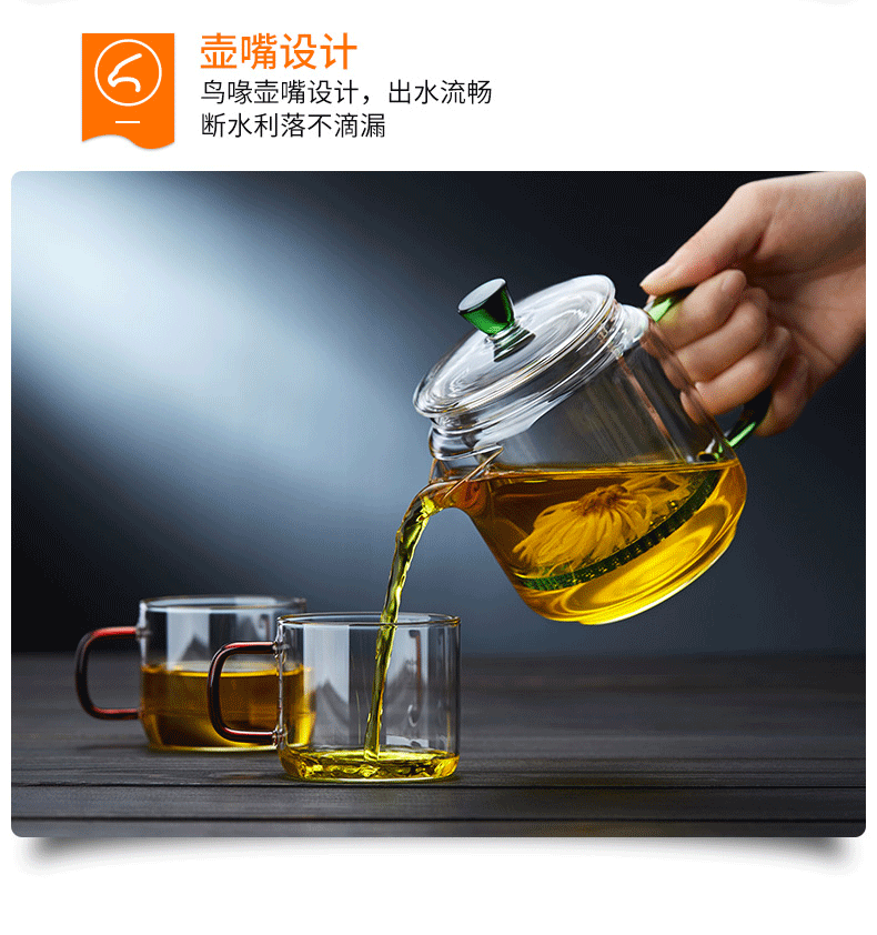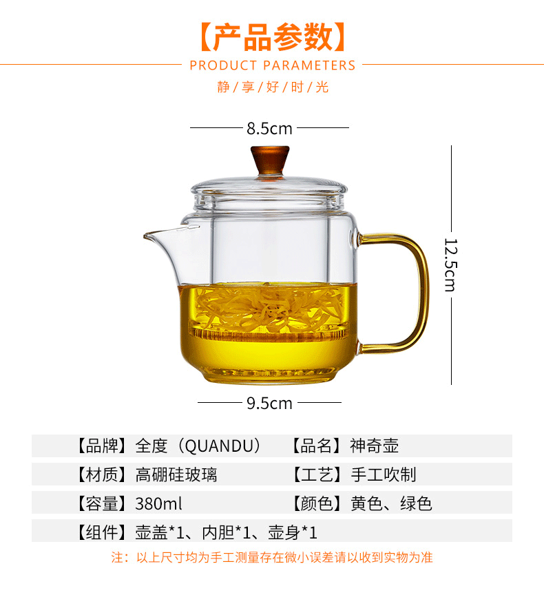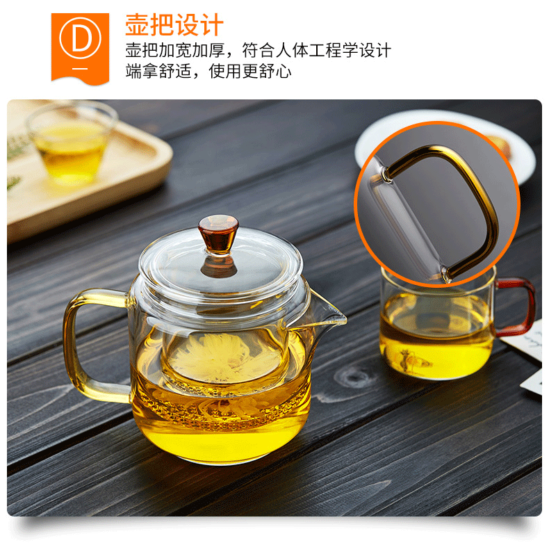 Quandu glass teapot, heat-resistant glass teapot with filter liner, colorful flower teapot, teapot, teapot, thickened yellow handle magic pot