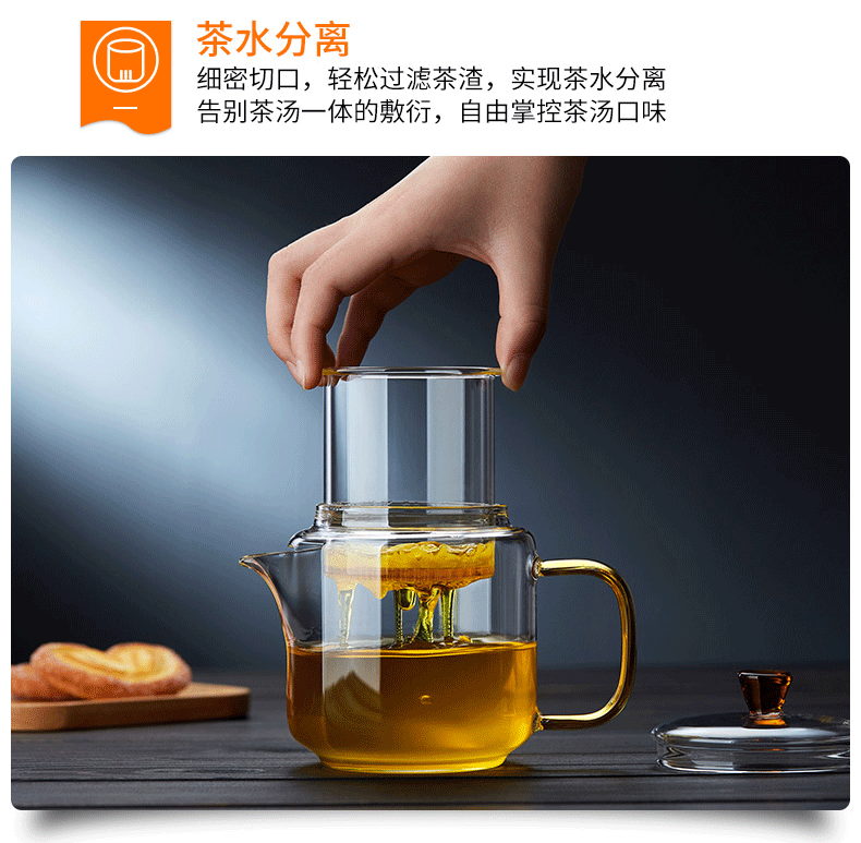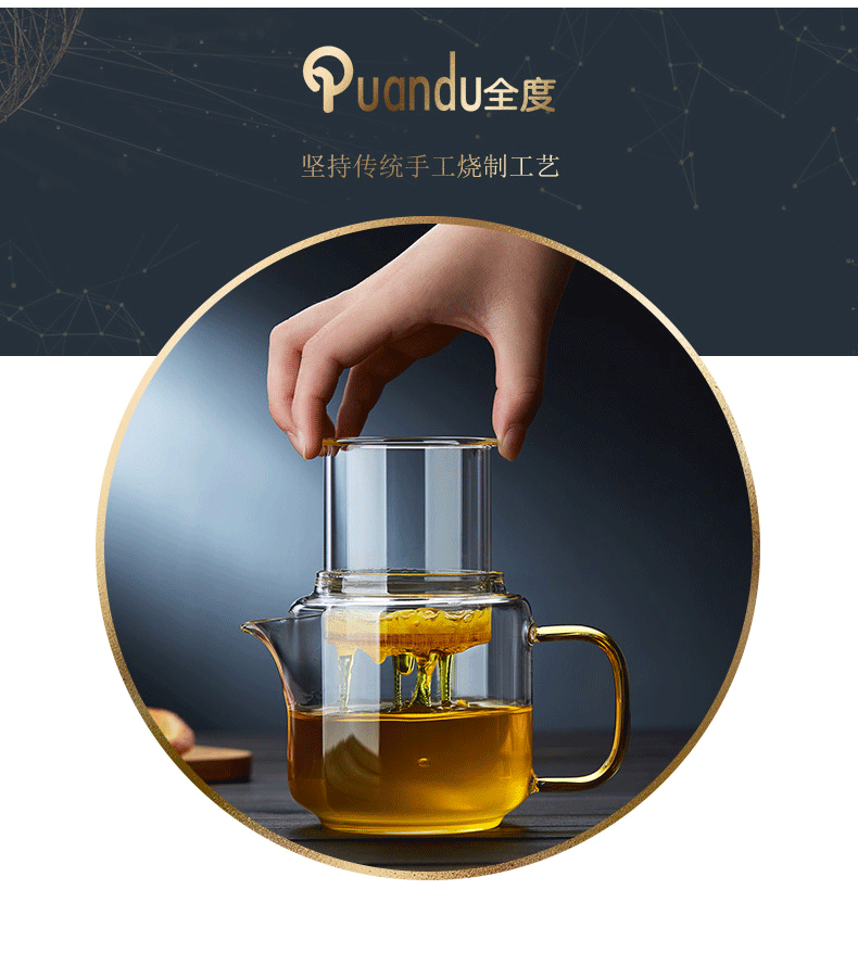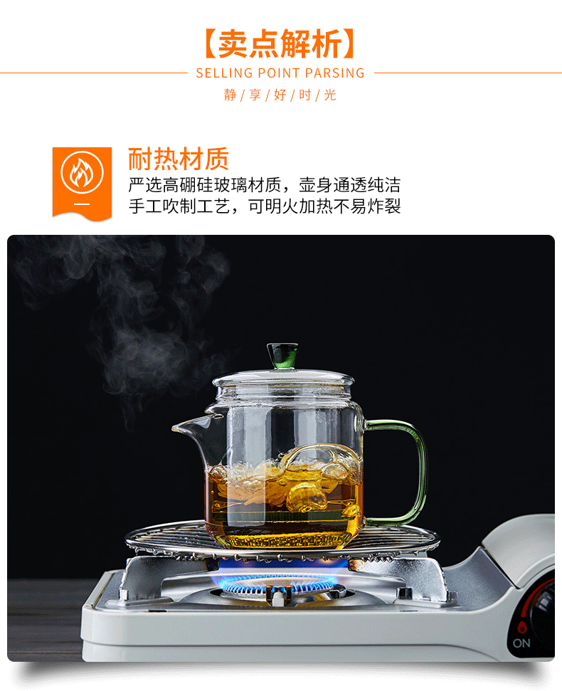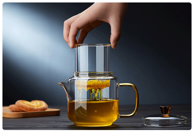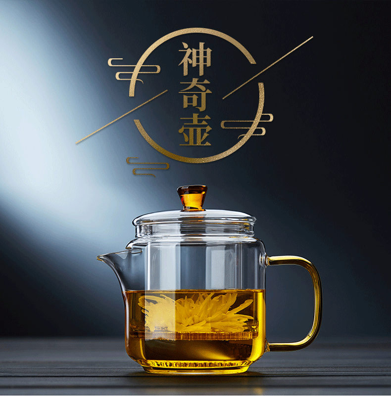 Quandu glass teapot, heat-resistant glass teapot with filter liner, colorful flower teapot, teapot, teapot, thickened yellow handle magic pot