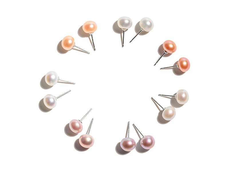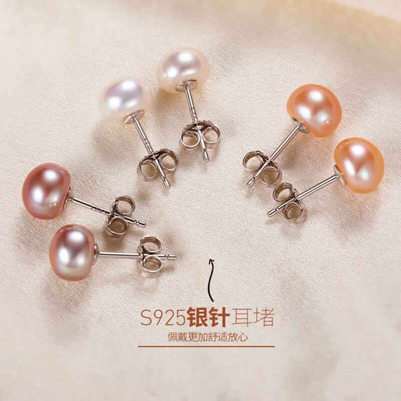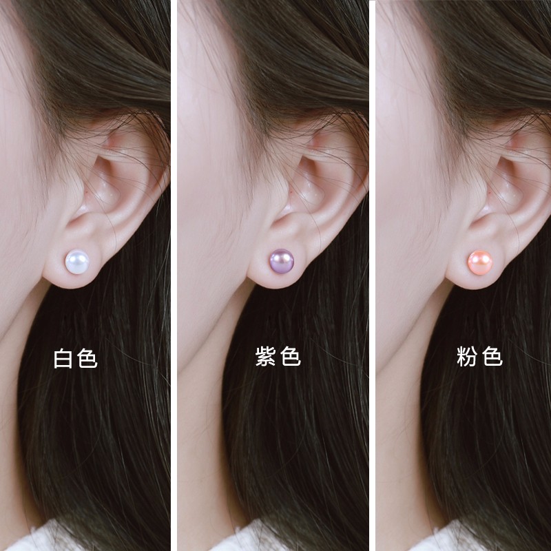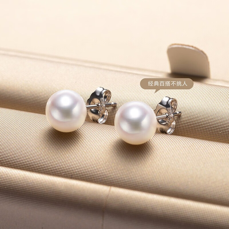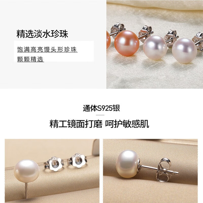 Qianlou with certificate 8-9mm freshwater pearl earrings, pure silver ear plugs, non-allergenic, steamed bun shape, bright gloss, white + white ear plugs, almost flawless