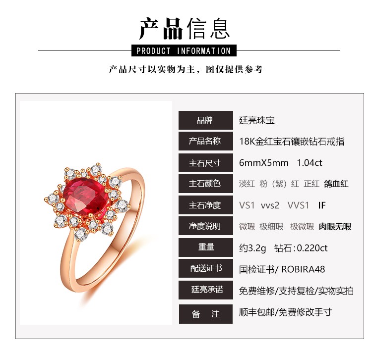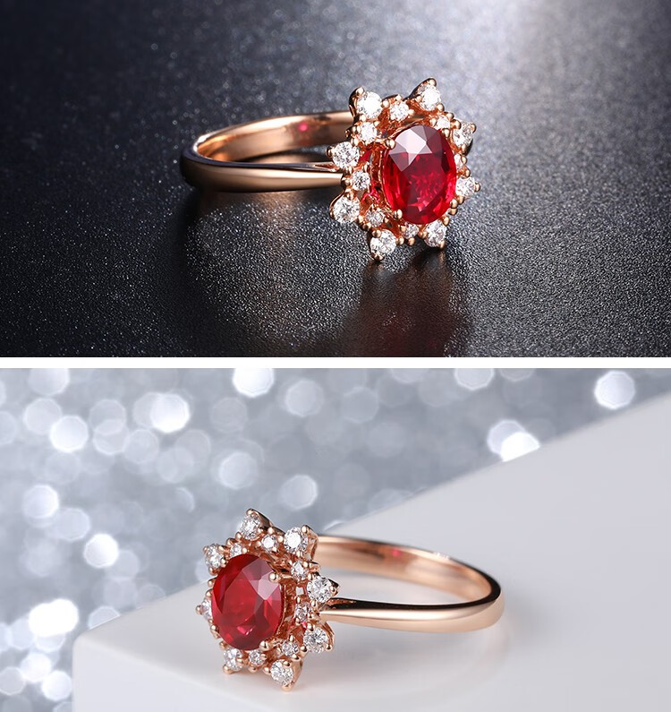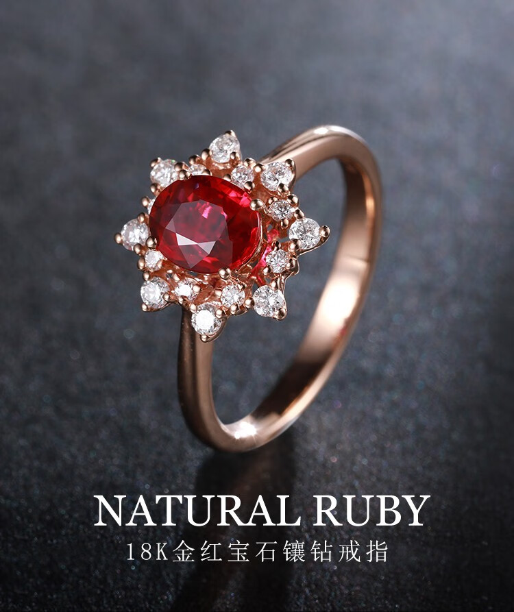 Tingliang 1 carat pigeon blood red ruby ring 18K gold inlaid with diamond colored gemstone ring snowflake style size message (10 to 20) ready stock