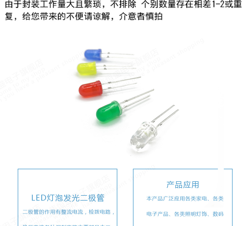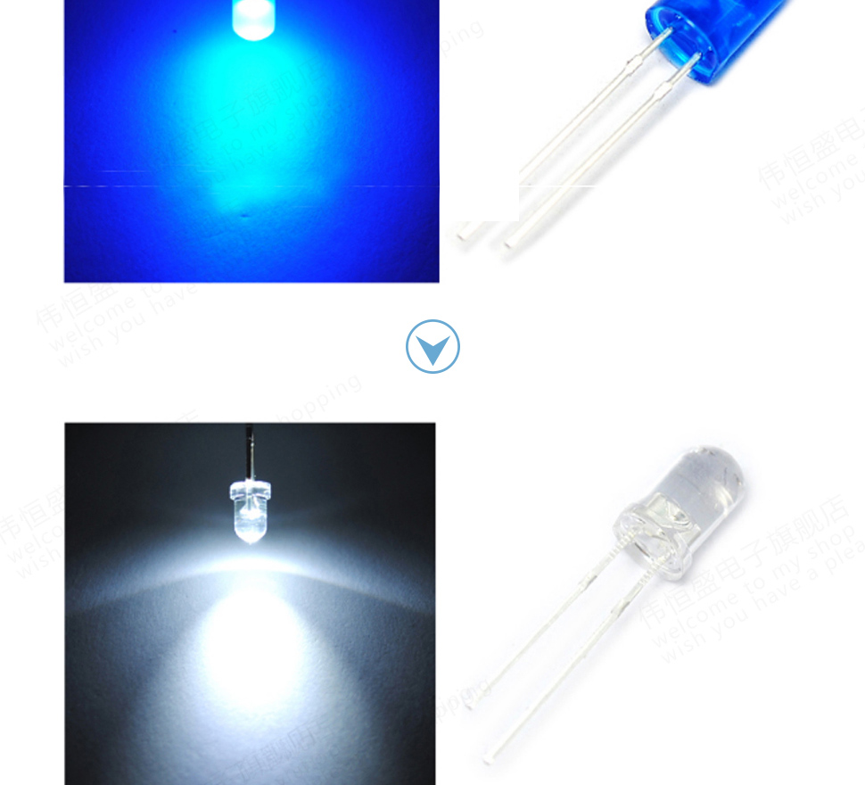 3mm 5mm LED bulb light-emitting diode F3 F5 red green orange yellow blue white purple in-line lamp beads 3MM white hair red (50 pcs)