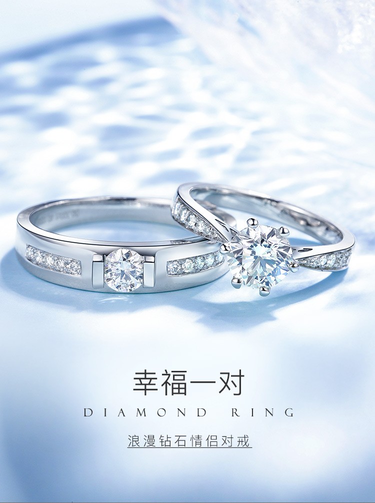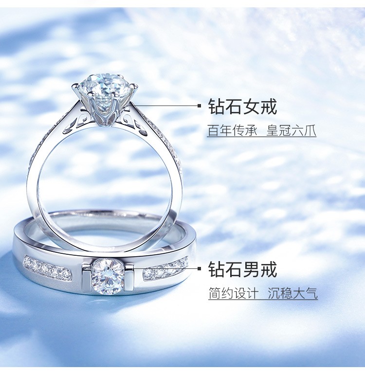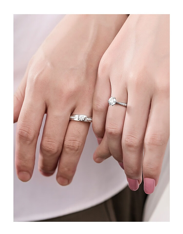 Love diamond 18K gold/PT950 platinum diamond ring, fashionable and versatile couple ring, proposal, wedding ring, birthday gift, men's ring + women's ring, white 18K gold