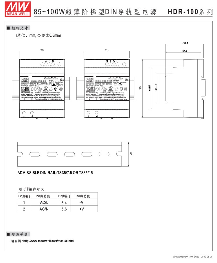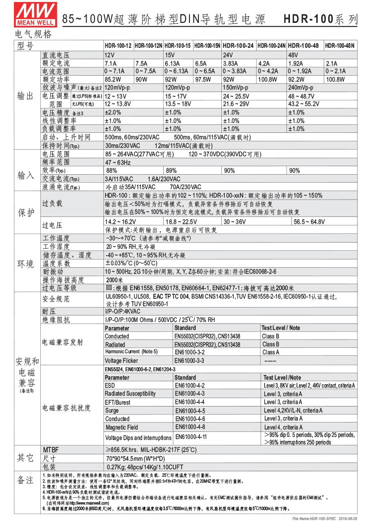 Taiwan Meanwell HDR 100w ultra-thin ladder type DIN rail switching power supply HDR-100-24N 24V4.2A output