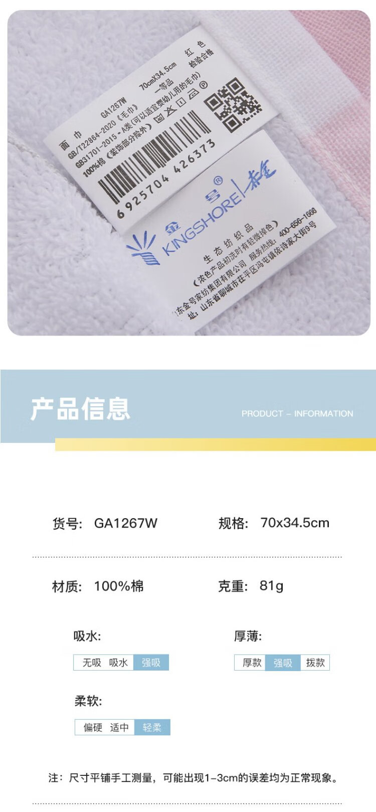 Gold type A towel 2 double-layer gauze pure cotton 100% face towel 100% cotton absorbent water towel towel can be used on both sides