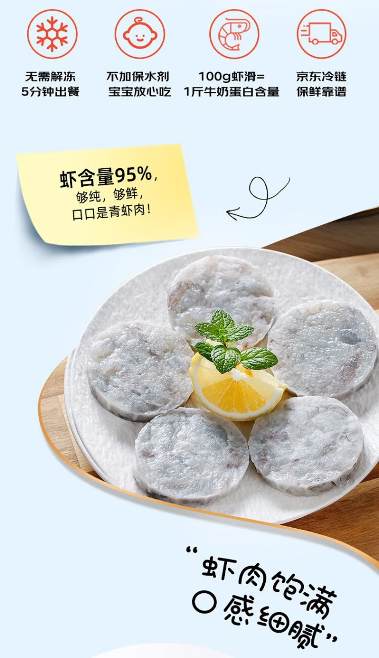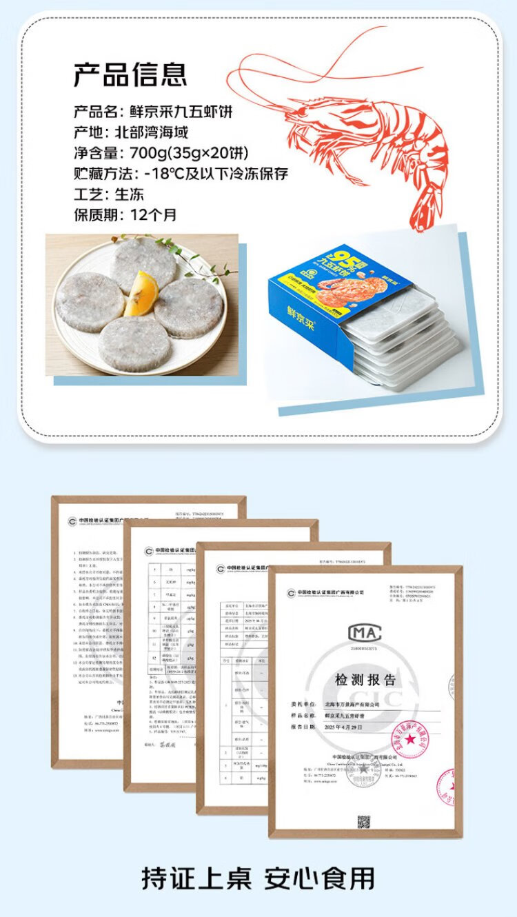 Fresh Jingcai, no water retaining agent, shrimp content: 95% North Sea prawn cakes, 700g box, children's breakfast, straight from the source