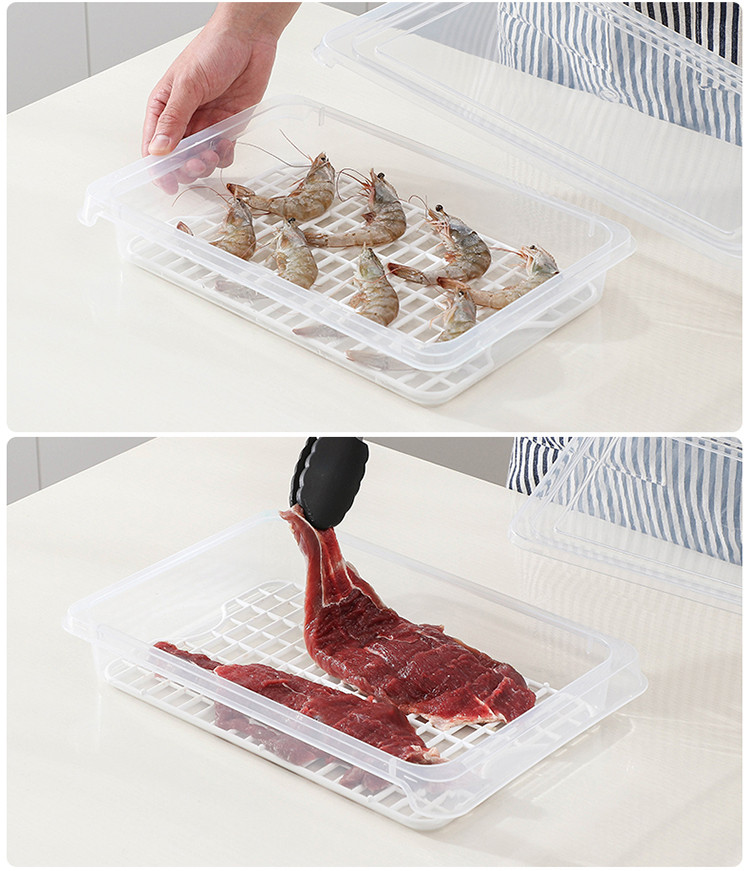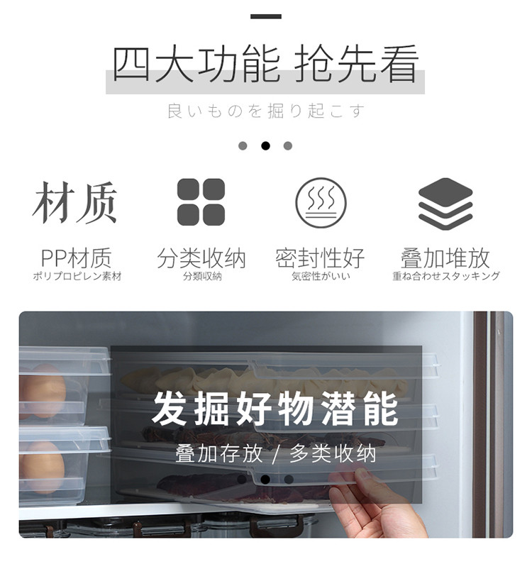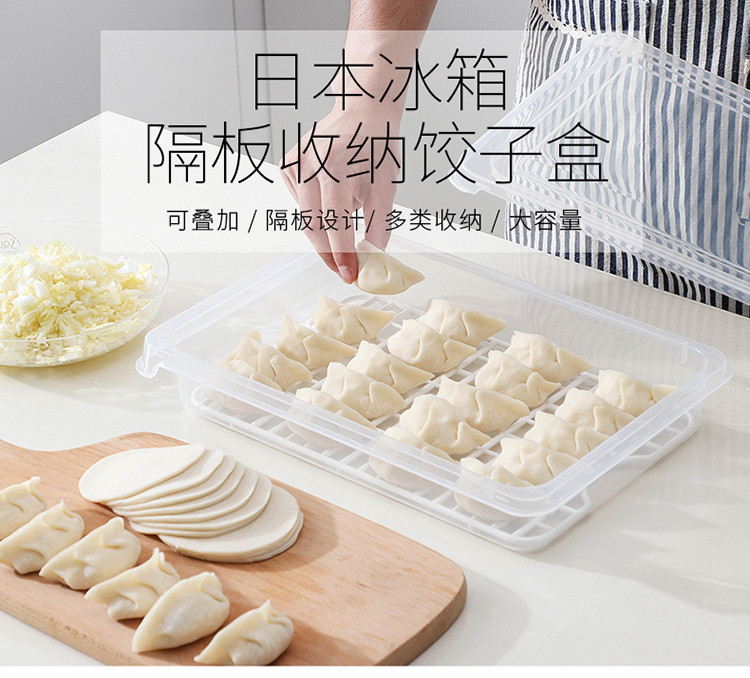Home Story Dumpling Box Food Grade Freezer Box Refrigerator Storage Fresh Box Household Food Storage Box Refrigeration and Drainage with Partition Pack of Three 1 Layer