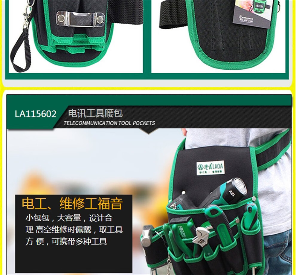 LAOA old A tool bag multifunctional waist bag belt hanging bag electrician bag repair tool bag canvas storage bag work bag electrician bag LA115601+ belt