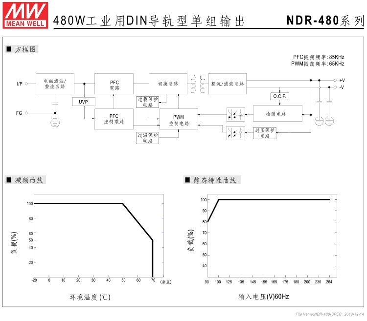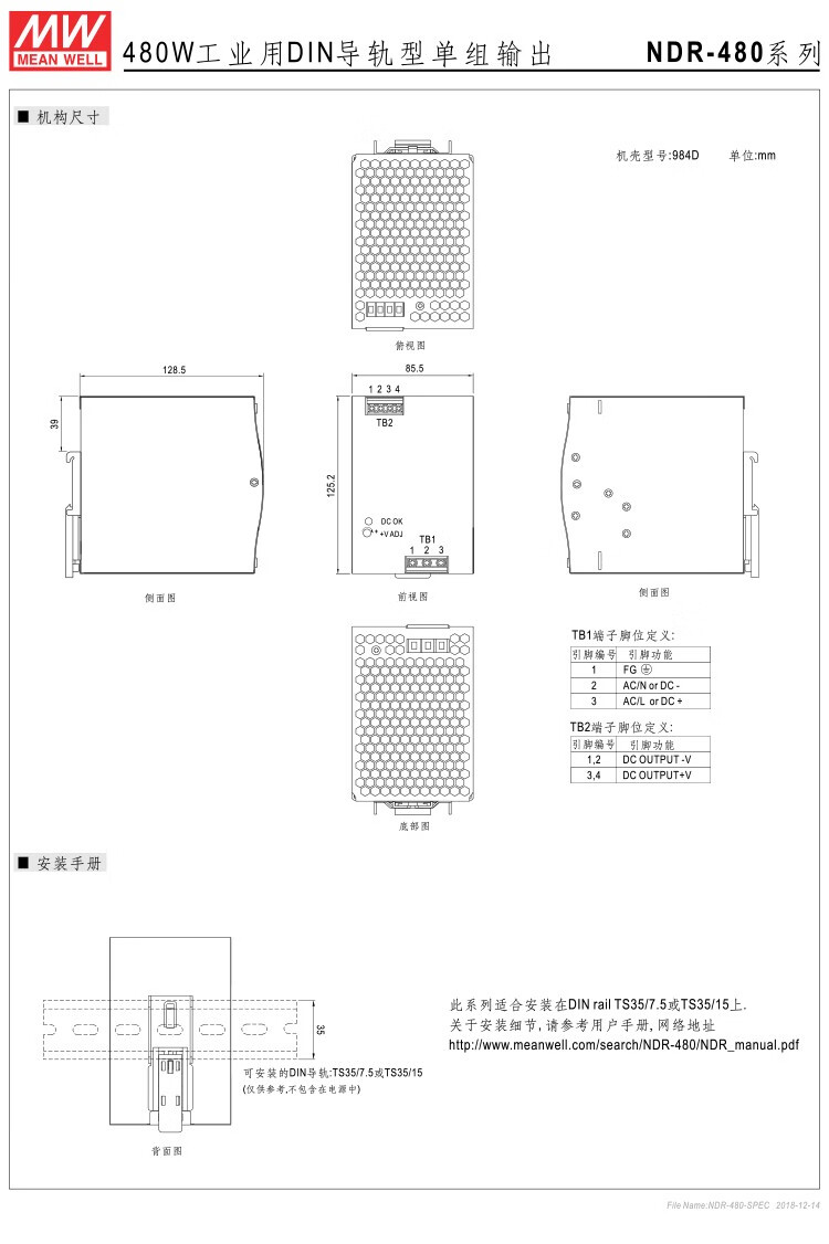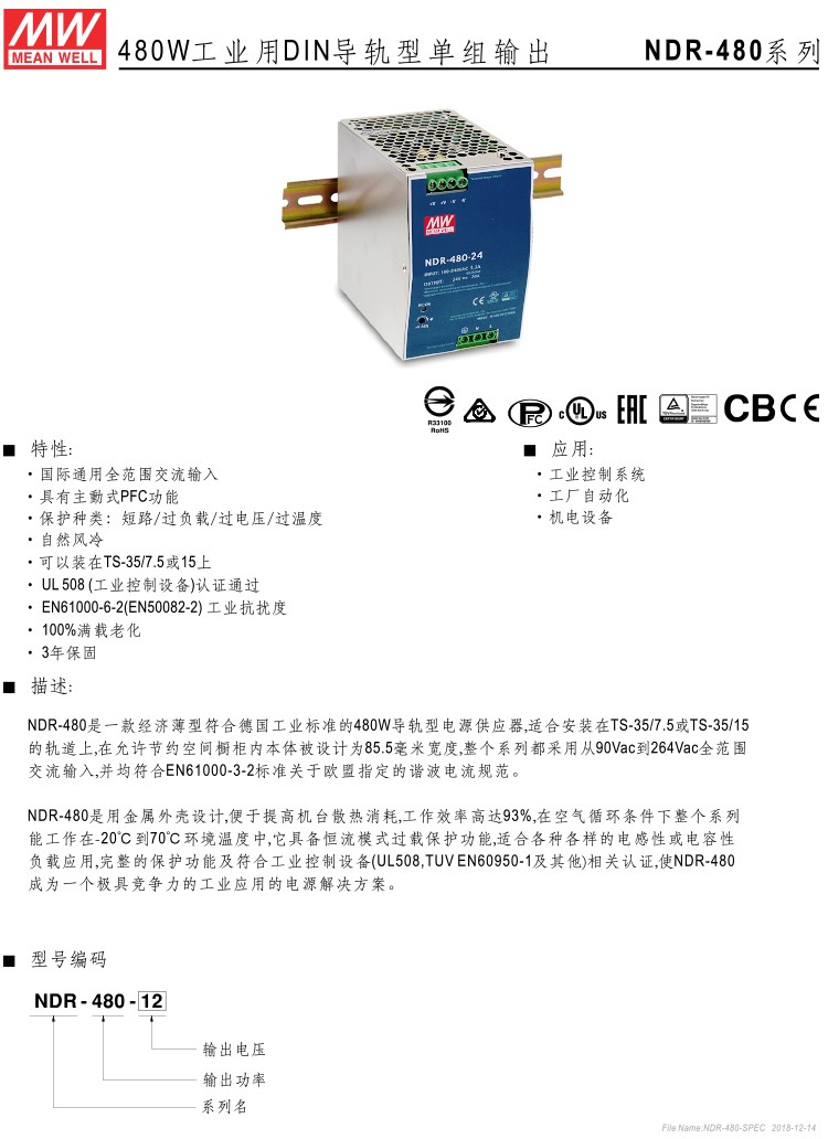 Taiwan Meanwell NDR 480w industrial DIN rail switching power supply NDR-480-24 24V20A output