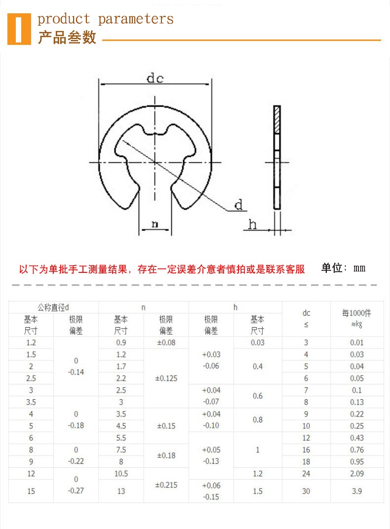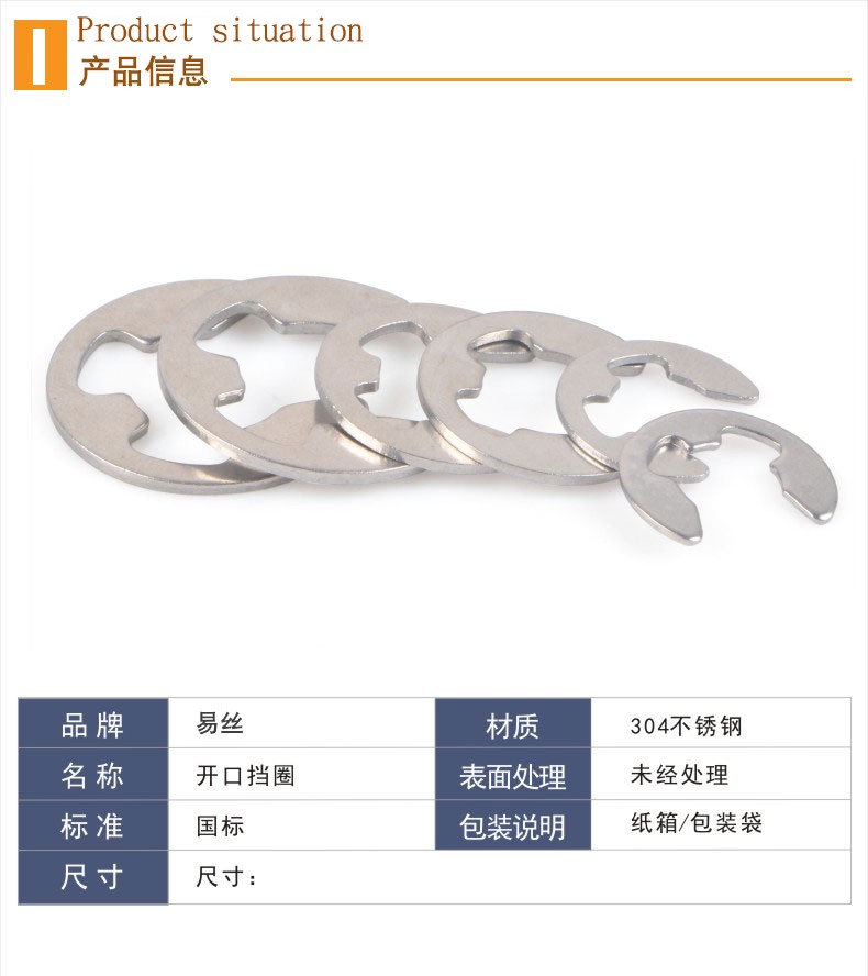 Easy stainless steel 304 open retaining ring E-type circlip buckle E-type circlip circlip for inner and outer shaft buckle 9 (50 pieces)