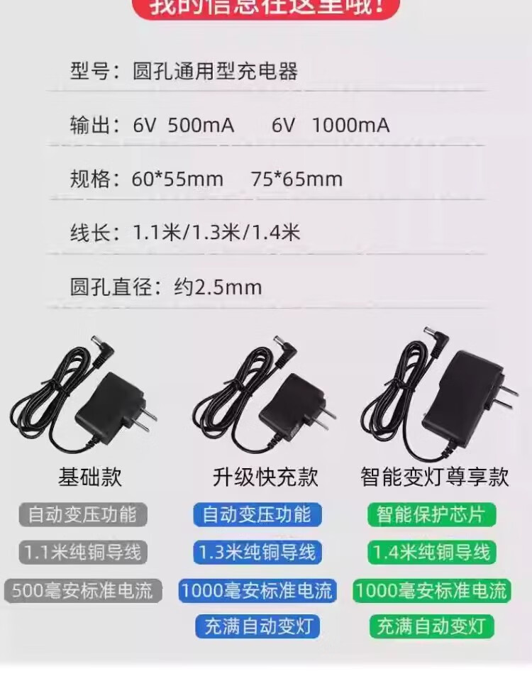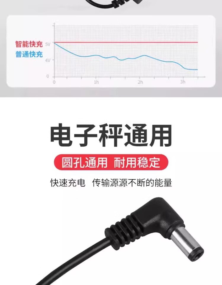 Huijianshijia Electronic Scale Charger Power Cord Universal Platform Scale Electronic Scale 6v Round Hole Three-hole Charger Power Adapter 6v Ordinary Model (Invariant Light)