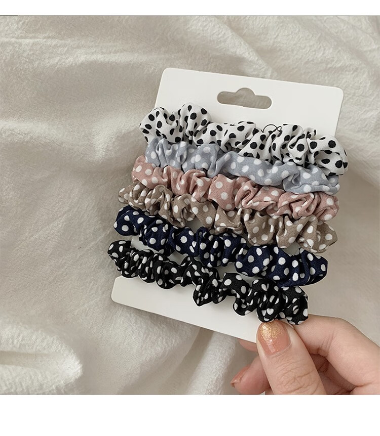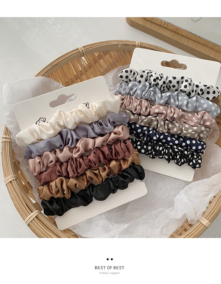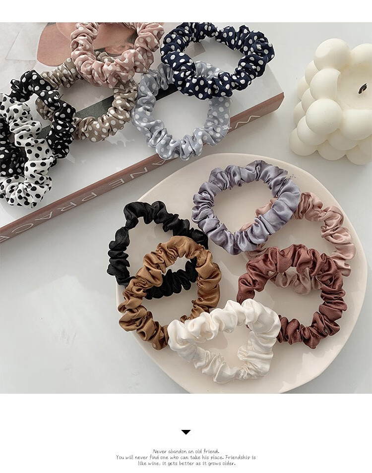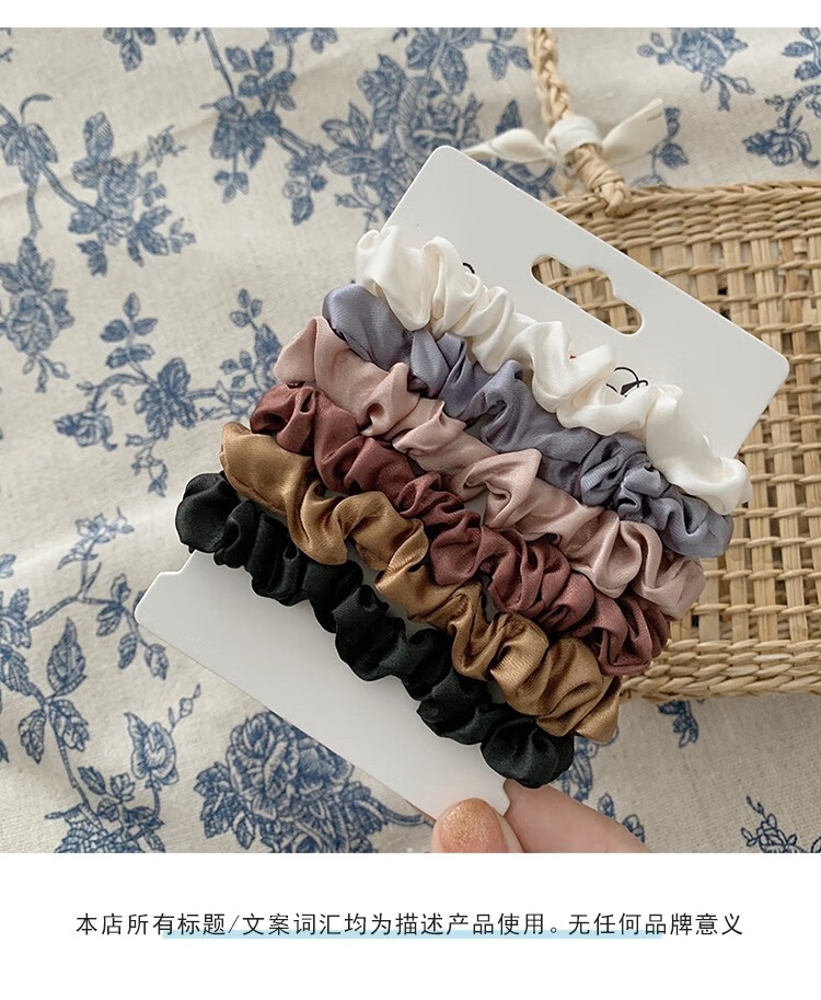 Morning Star French high-end satin large intestine hair band for girls to tie their hair with high elastic elastic band Internet celebrity headband headband dark color 6-piece set
