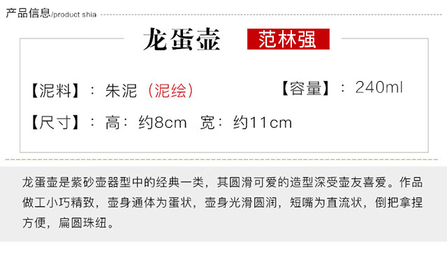 Qianshoutang Yixing purple sand hand-painted raw ore dragon egg pot 240ml handmade by national assistant arts and crafts teacher Fan Linqiang