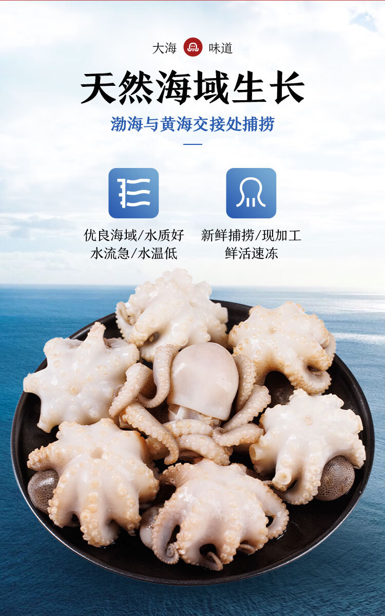 Meijiajiasan small octopus, net weight 2Jin Jin is equal to 0.5 kg (500g*2 bags) 16-26 octopus, dirty octopus