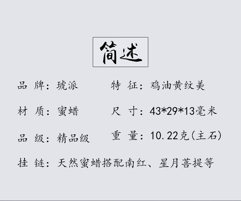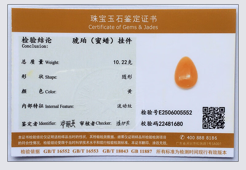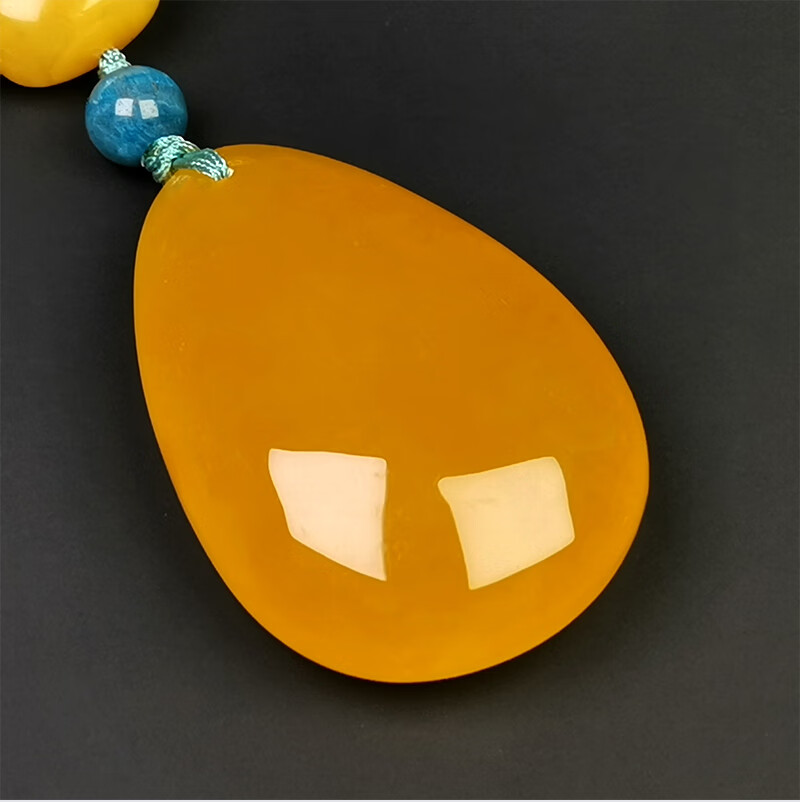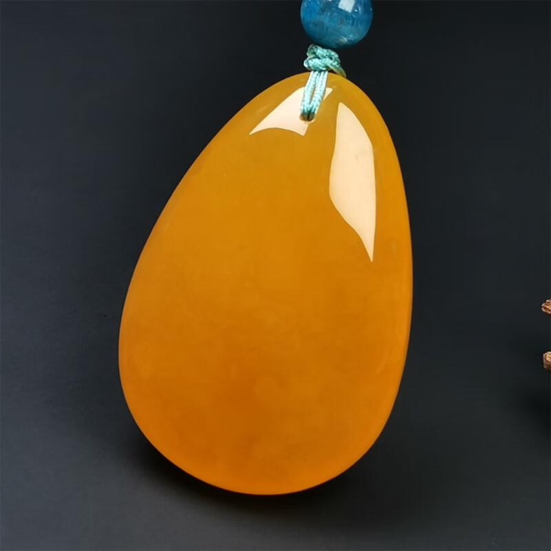 Hupai, one thing, one picture, one certificate, natural beeswax pendant, drop-shaped necklace, sweater chain, chicken fat xanthine ore pendant, 10.22g, 43*29*13mm
