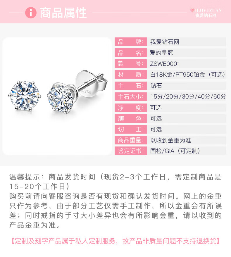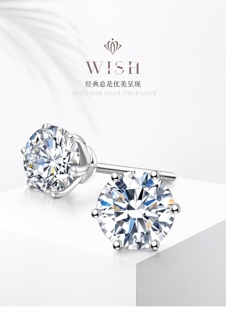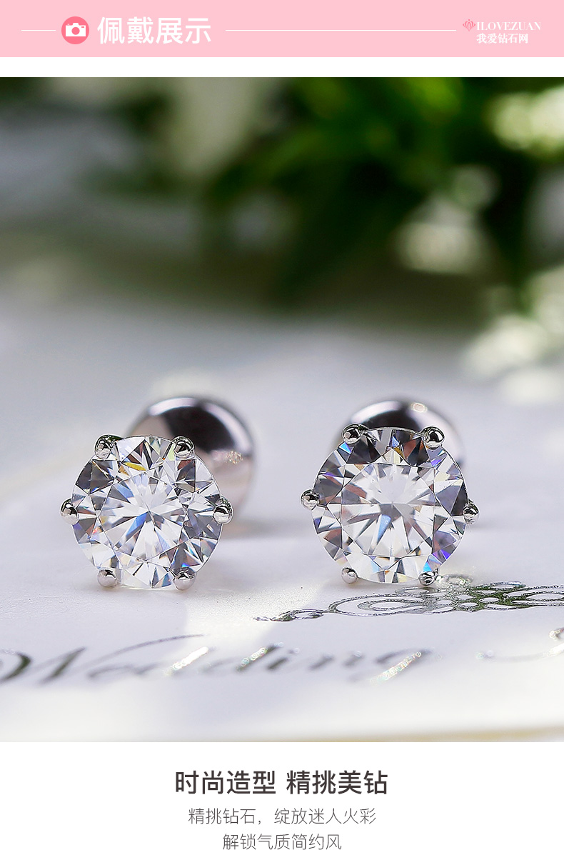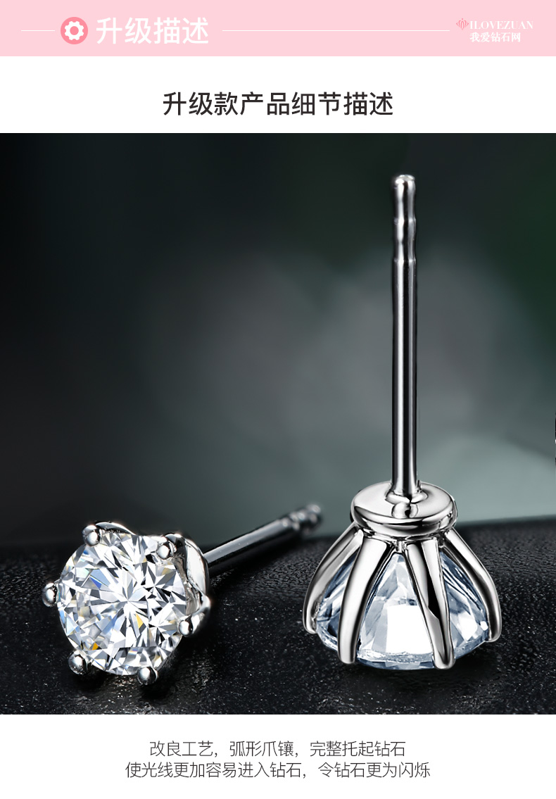 I Love Diamond Network Platinum Diamond Earrings Women's 18k Gold Earrings Wedding Six-Prong Loose Diamond Customized Valentine's Day Gift for Girlfriend PT950 Platinum Total 30 Points FG Color Diamond Earrings