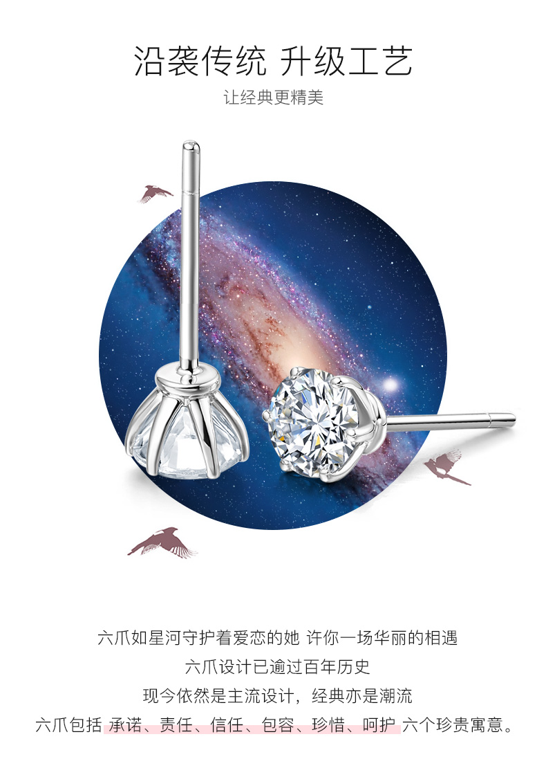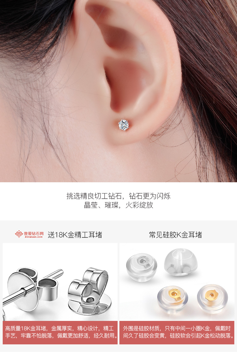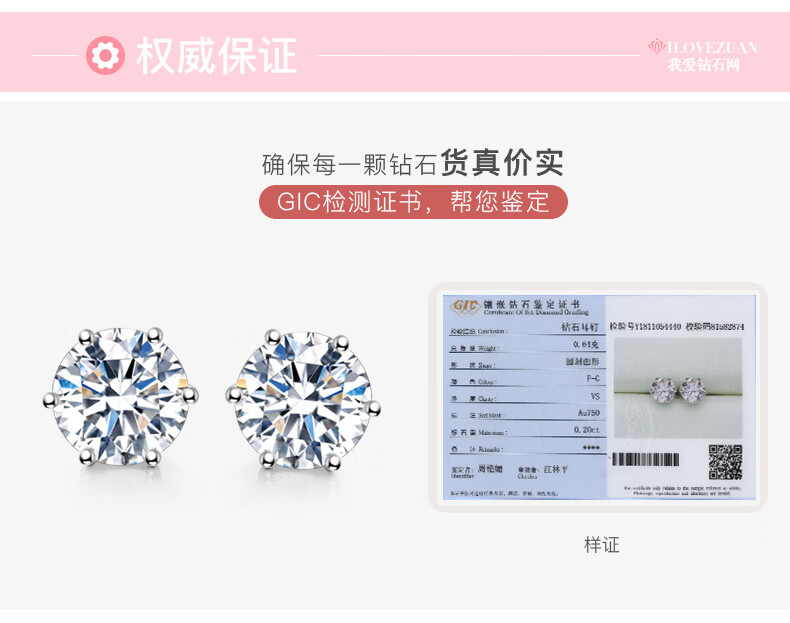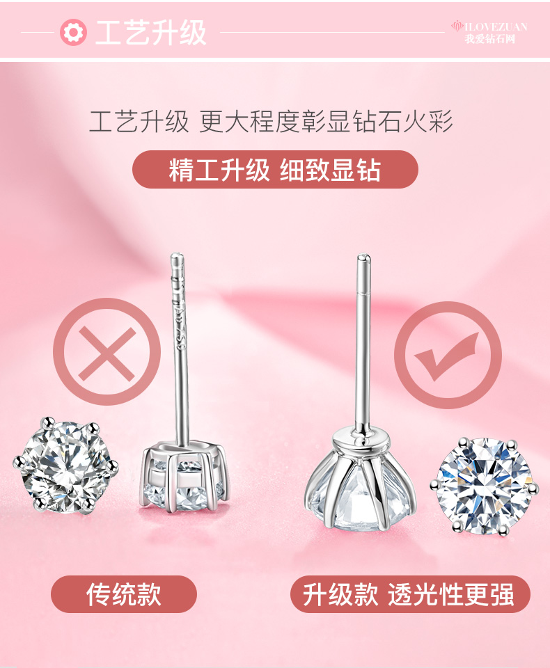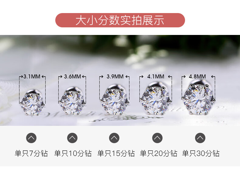 I Love Diamond Network Platinum Diamond Earrings Women's 18k Gold Earrings Wedding Six-Prong Loose Diamond Customized Valentine's Day Gift for Girlfriend PT950 Platinum Total 30 Points FG Color Diamond Earrings