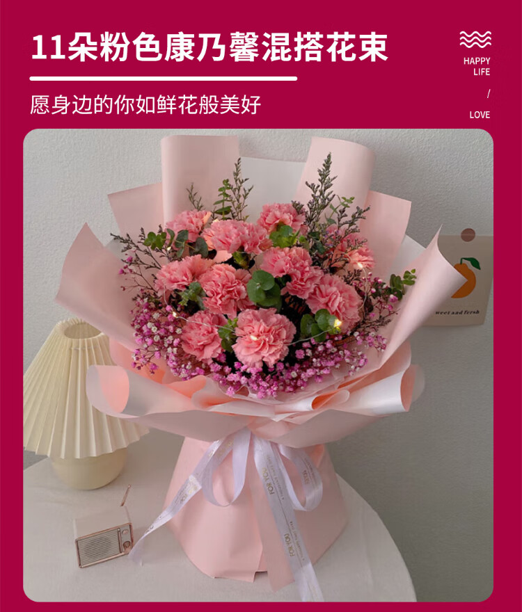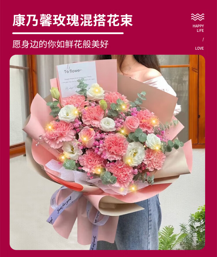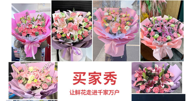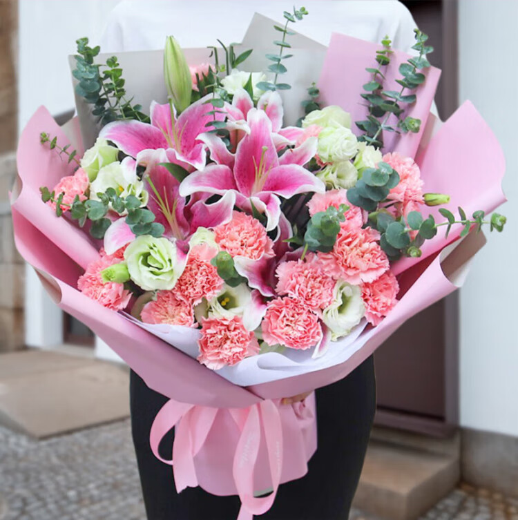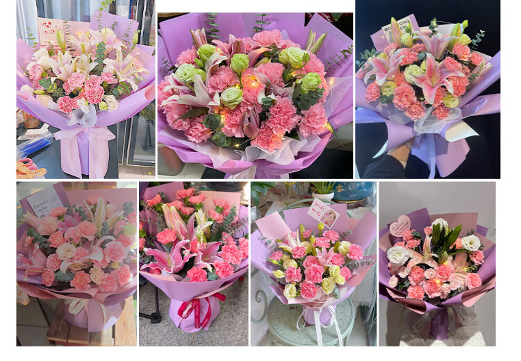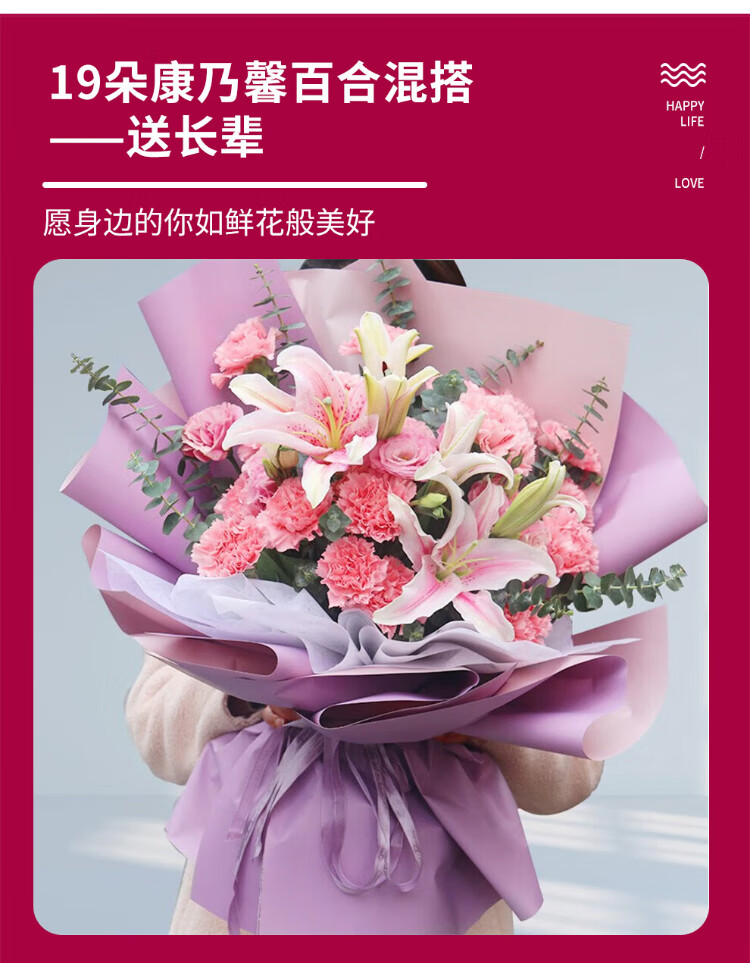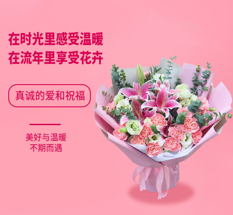 Xinyi New Year's Eve flower express rose carnation bouquets as gifts for mothers and elders. Nationwide flower delivery in the same city. 19 carnations and lilies mixed bouquets.