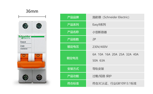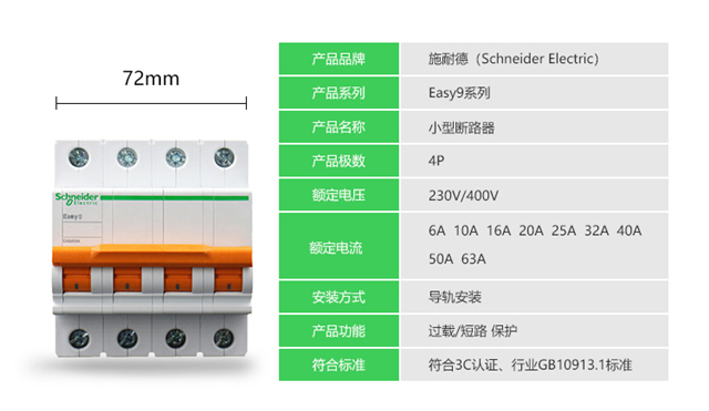 Schneider air switch circuit breaker EA9 series EA9AN 4P C63A air switch EA9AN-C63A/4P