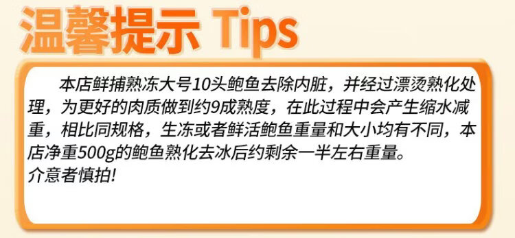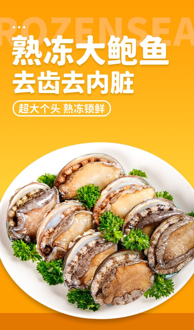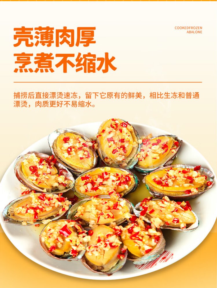 Fingertip fresh, freshly cooked and frozen large abalone, three-step treatment-free, fresh and frozen shellfish, eviscerated, New Year gift, 2 bags, freshly caught, cooked and frozen large abalone, 10 heads, net weight 500g*2