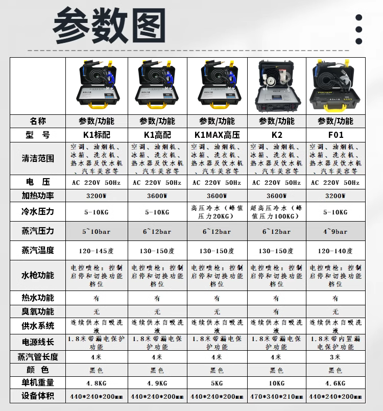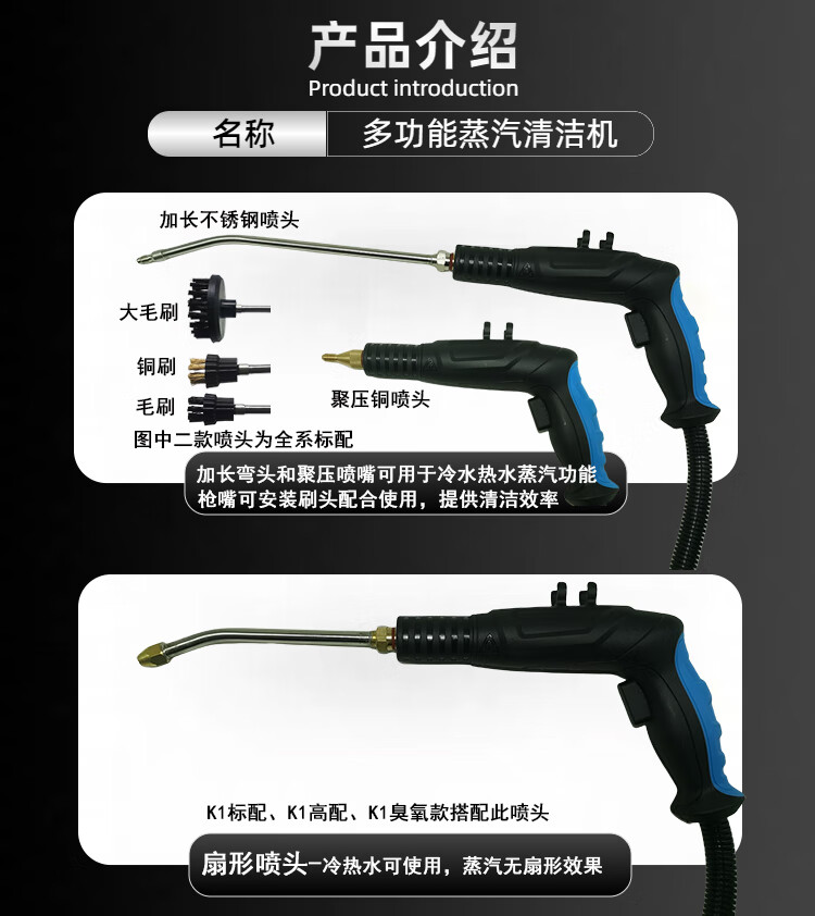 Yingdeli steam cleaner, high temperature and high pressure, commercial household appliance cleaning machine, air conditioning tool, full set of household multi-functional all-in-one machine equipment, high temperature steam, kitchen oil fume degreasing and disinfection, K1 standard (cold and hot water steam 3200W)