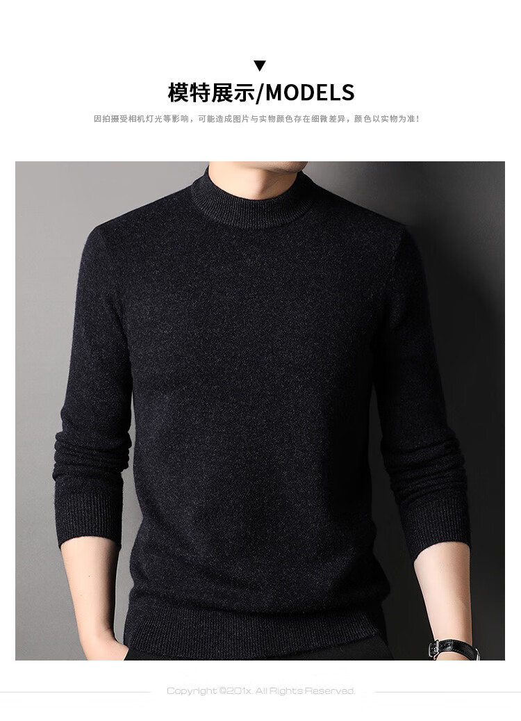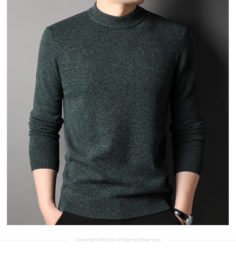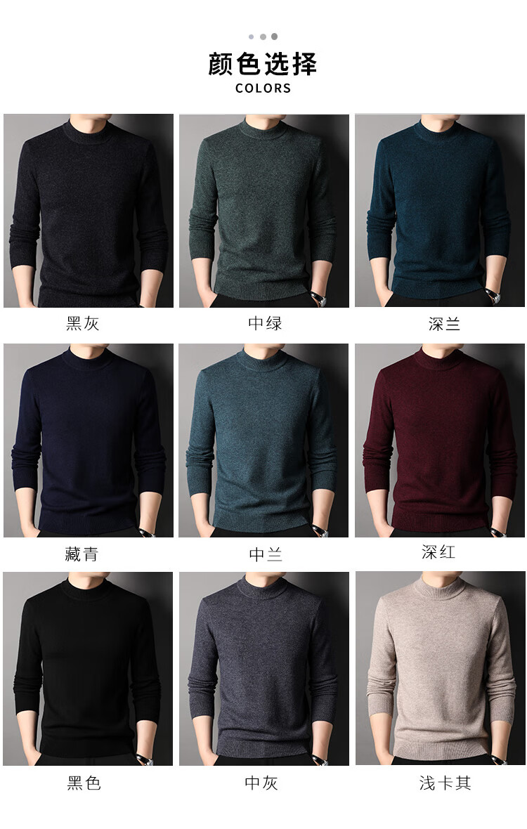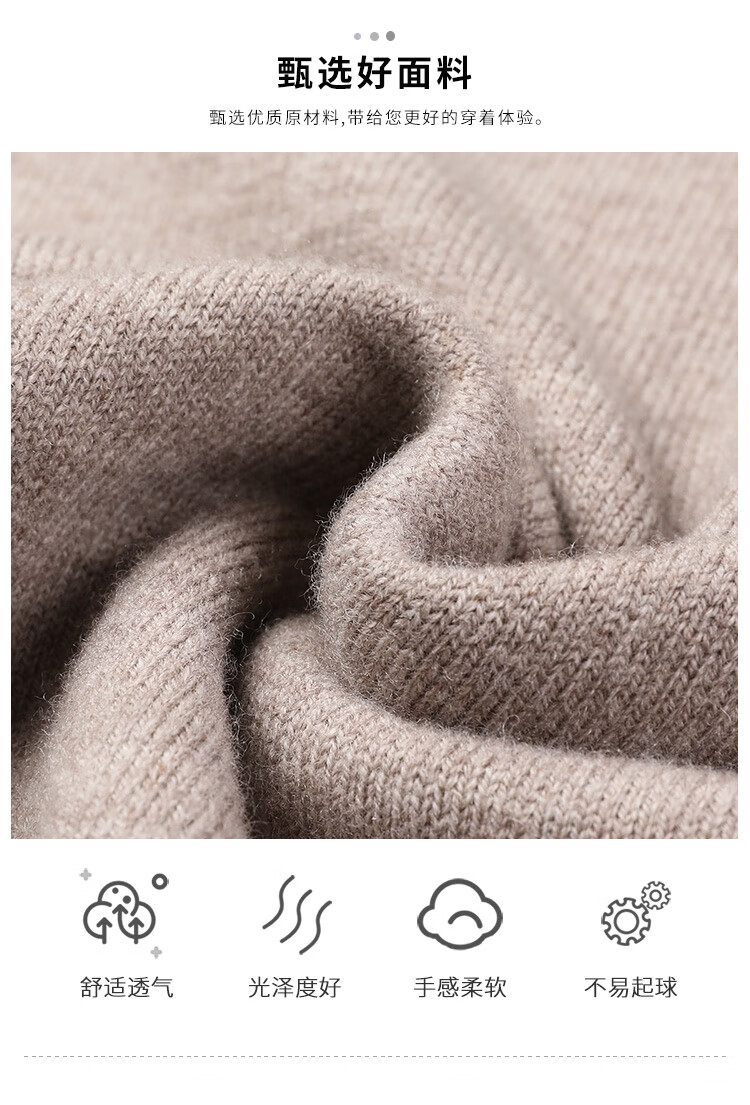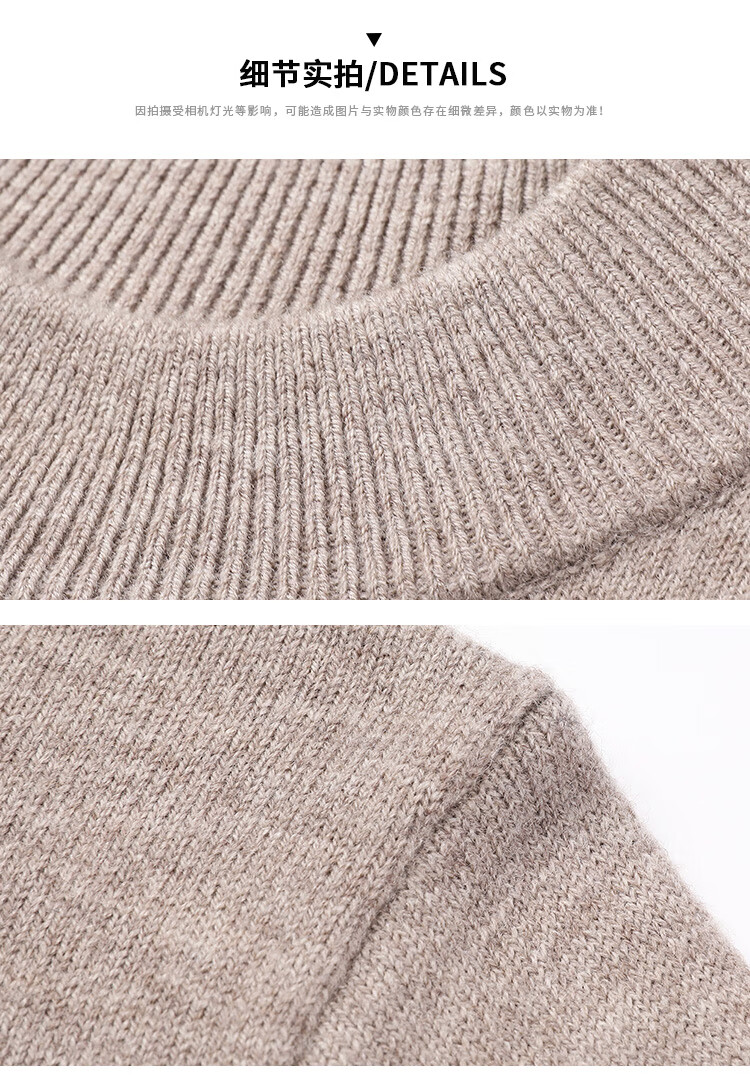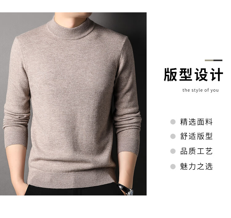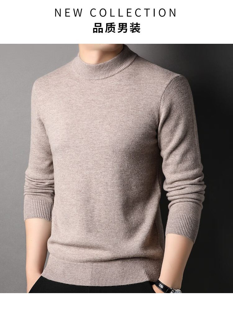 Hengyuanxiang Heavyweight 430G Thickened 100% Pure Wool Sweater Men's Half Turtle Collar Warm Sweater Men's Autumn and Winter Casual Sweater Light Khaki XL 390g Recommended 140-160Jin Jin equals 0.5 kg