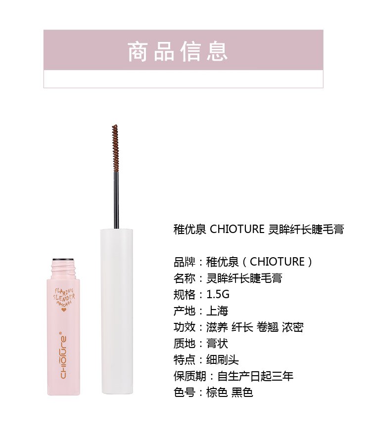 Zhiyouquan thin tube mascara waterproof 01 black slim long curly thick not easy to fade and smudge thin brush head birthday gift for women