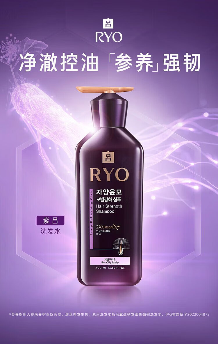 Ryo Purple Lu Shampoo 400ml Oil Controlling Fluffy Strong Anti-Breakage Shampoo Cream Oily Scalp Hot Products