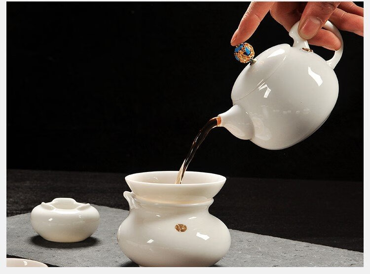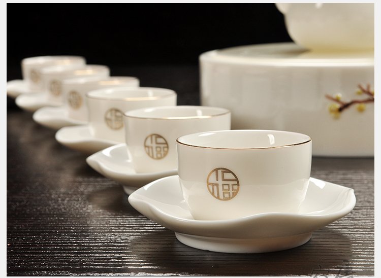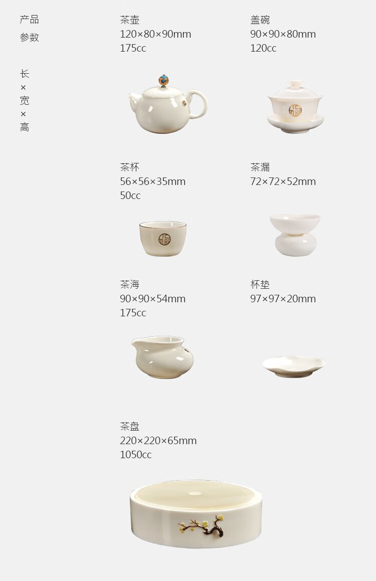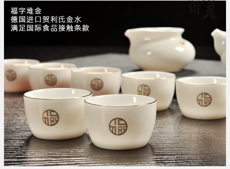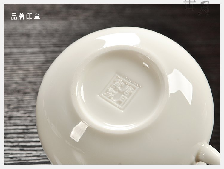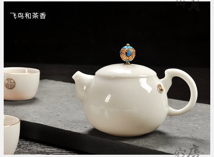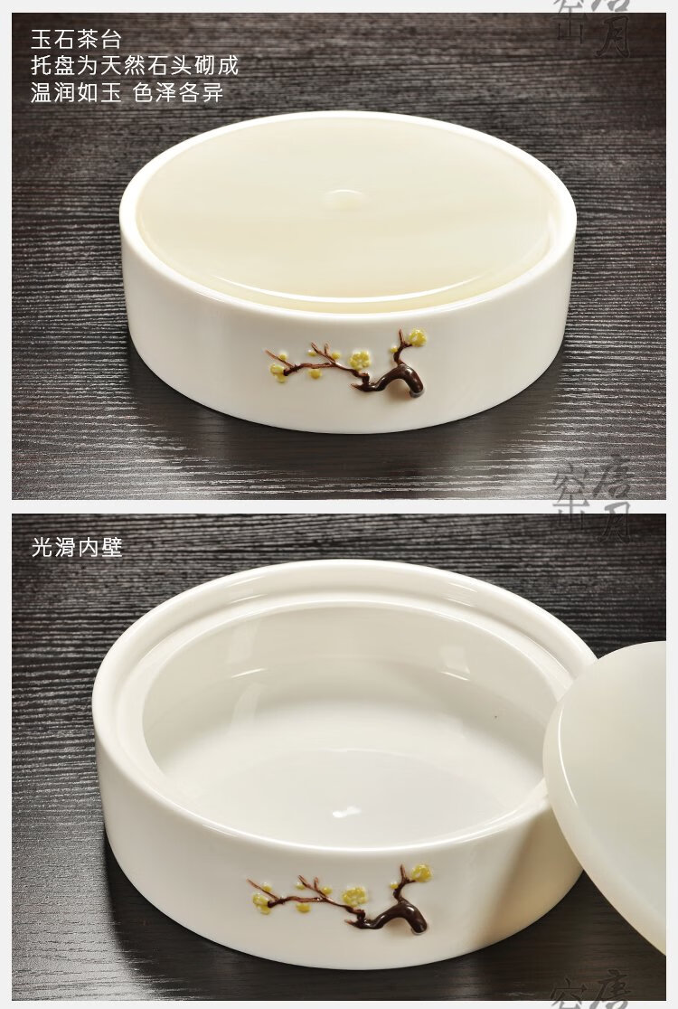 Greek-style mutton-fat jade porcelain Kung Fu tea set for home use Tangyue kiln Dehua white jade porcelain tea set office cover bowl tea cup small tea tray set jade tea table dry infusion tray gift box Horseshoe jade porcelain 7 pieces (gift box)