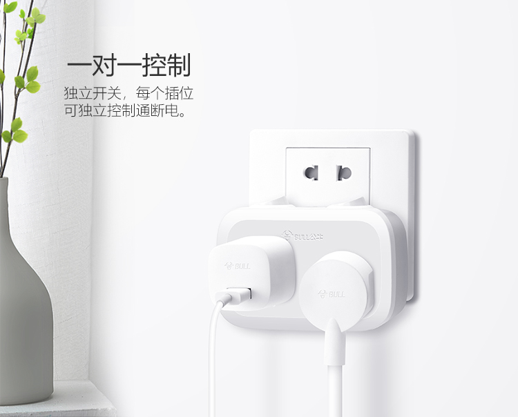 Bull (BULL) socket 10A wireless socket board separate control strip independent switch separate control strip with switch strip single control converter one-turn multi-power extension plug one-turn multi-socket