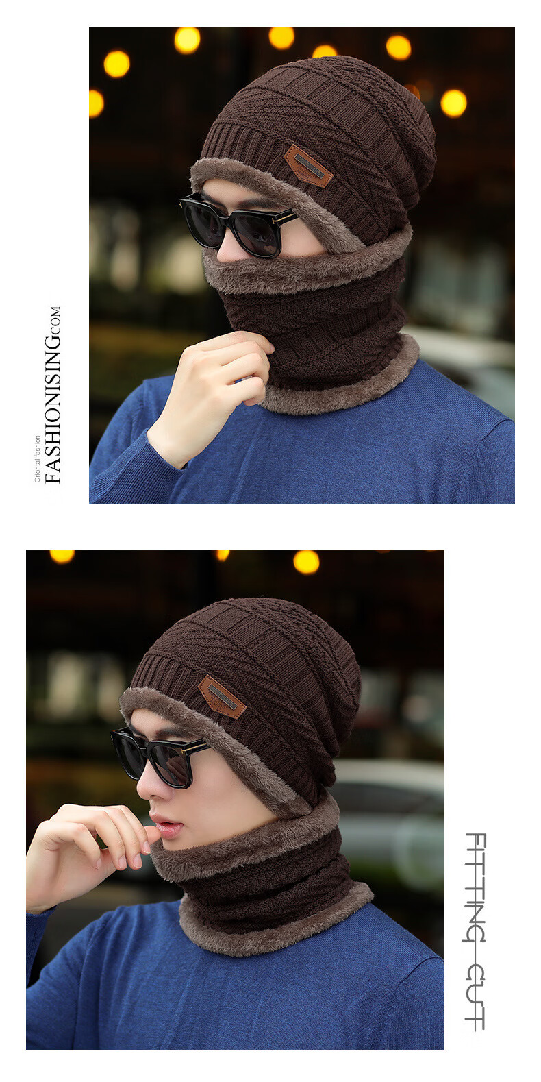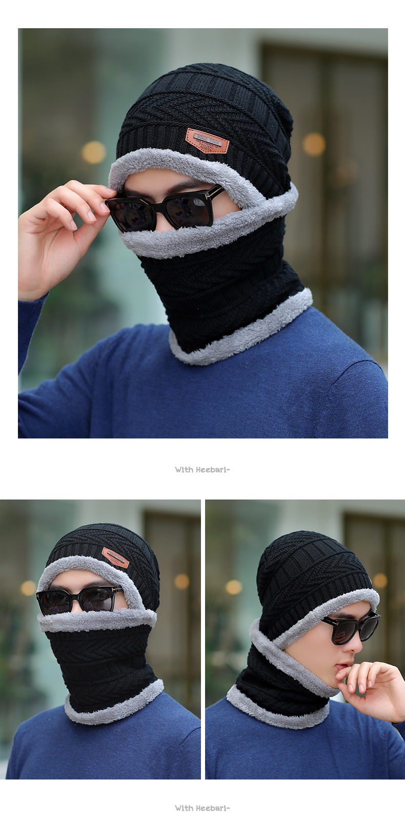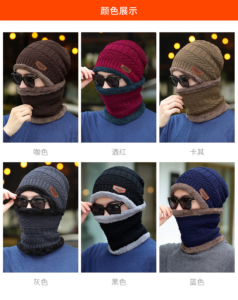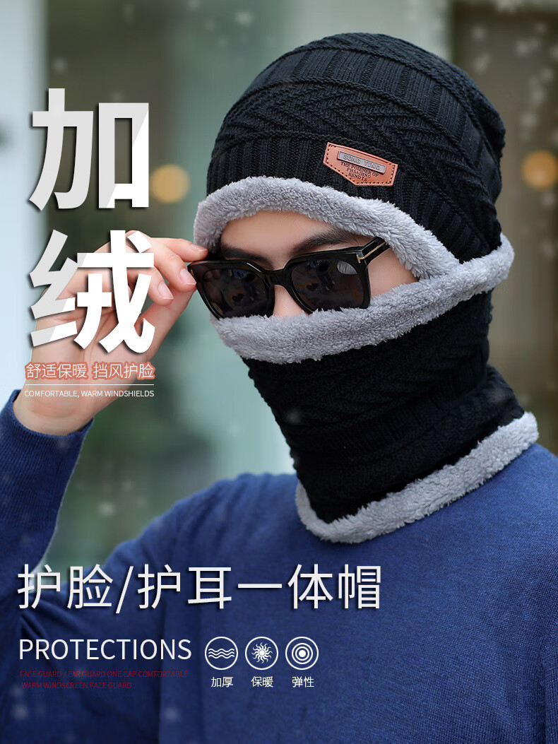 Demi Anissa Hat Men's Autumn and Winter Warm Plus Velvet Thickened Wool Hat Women's Scarf Knitted Hat Outdoor Cycling Coldproof Neck Cover Ear Protection Cotton Lei Feng Hat Set Black One Size
