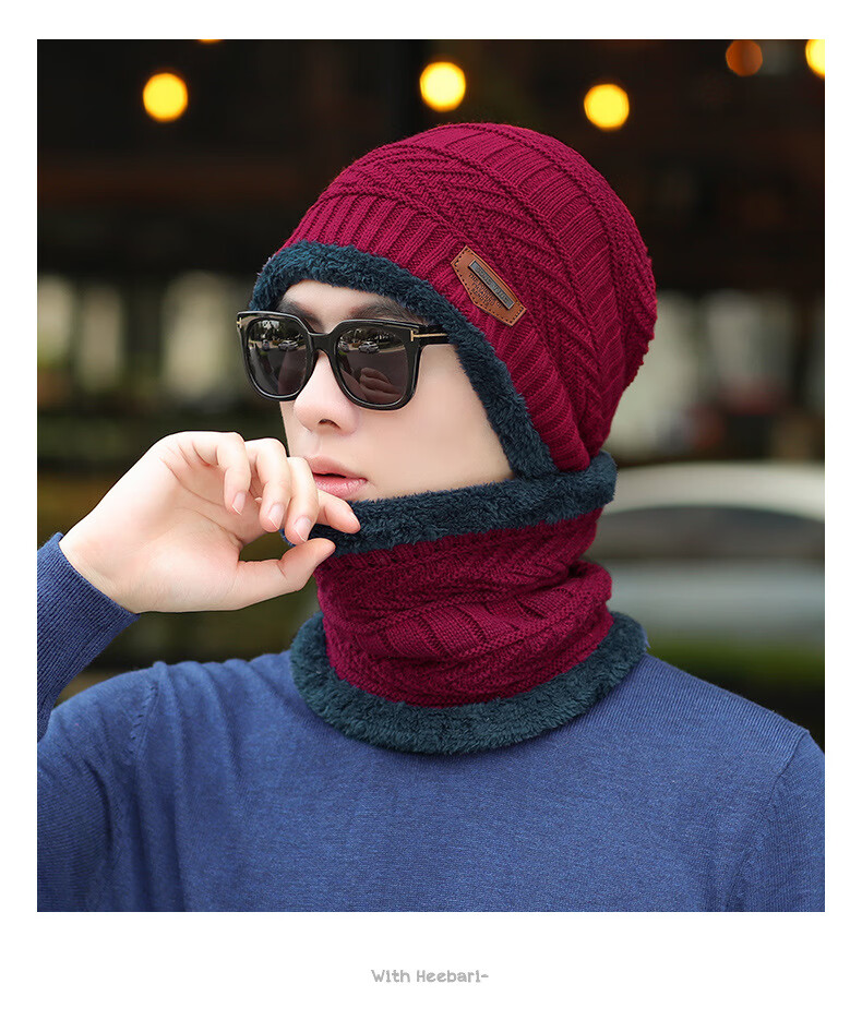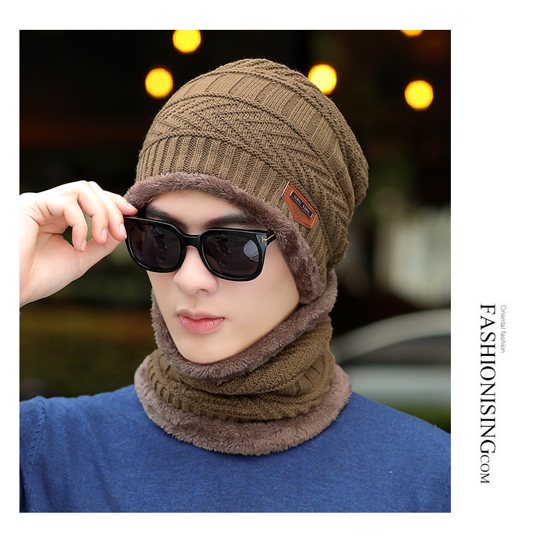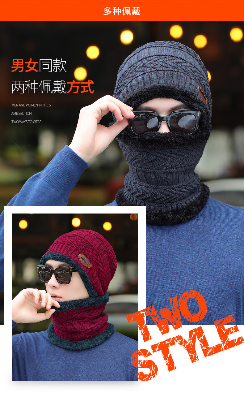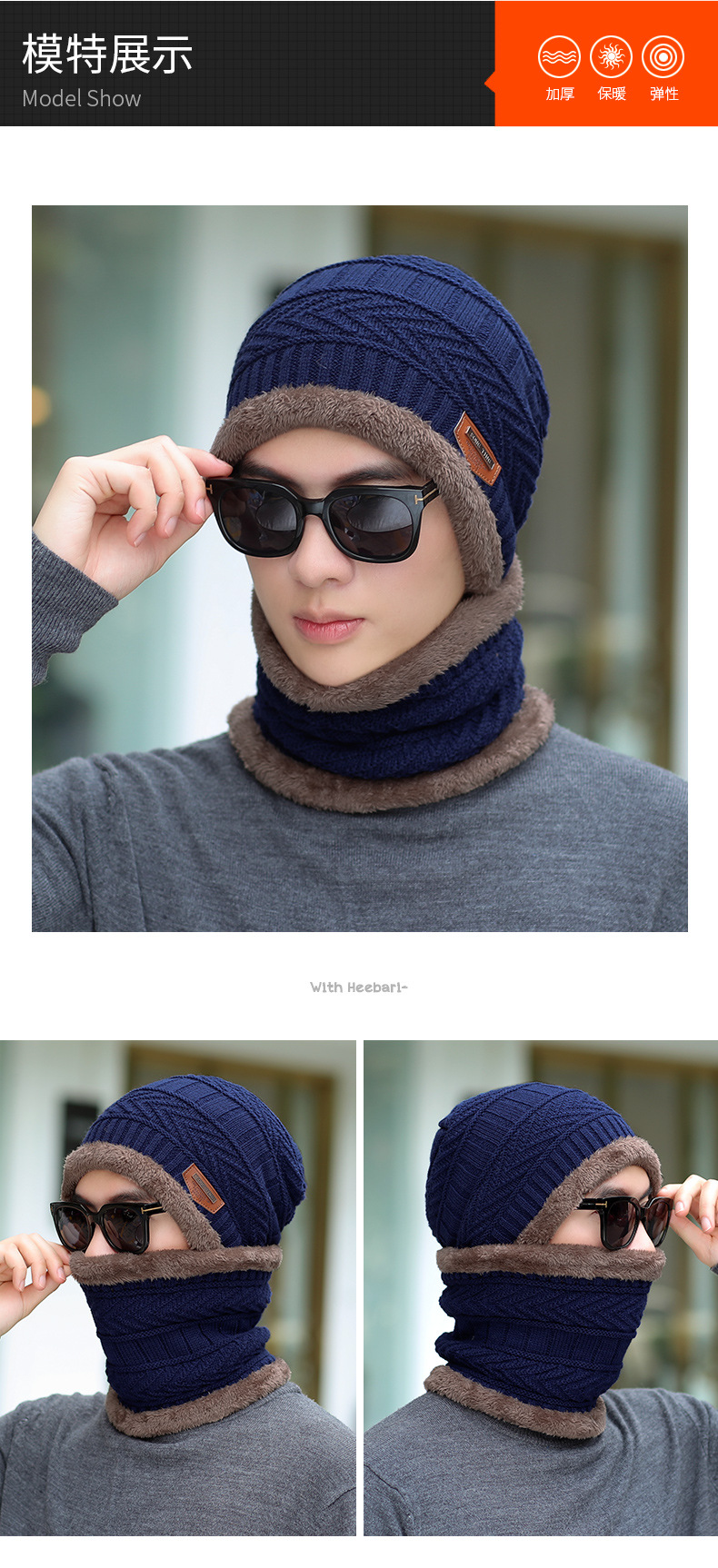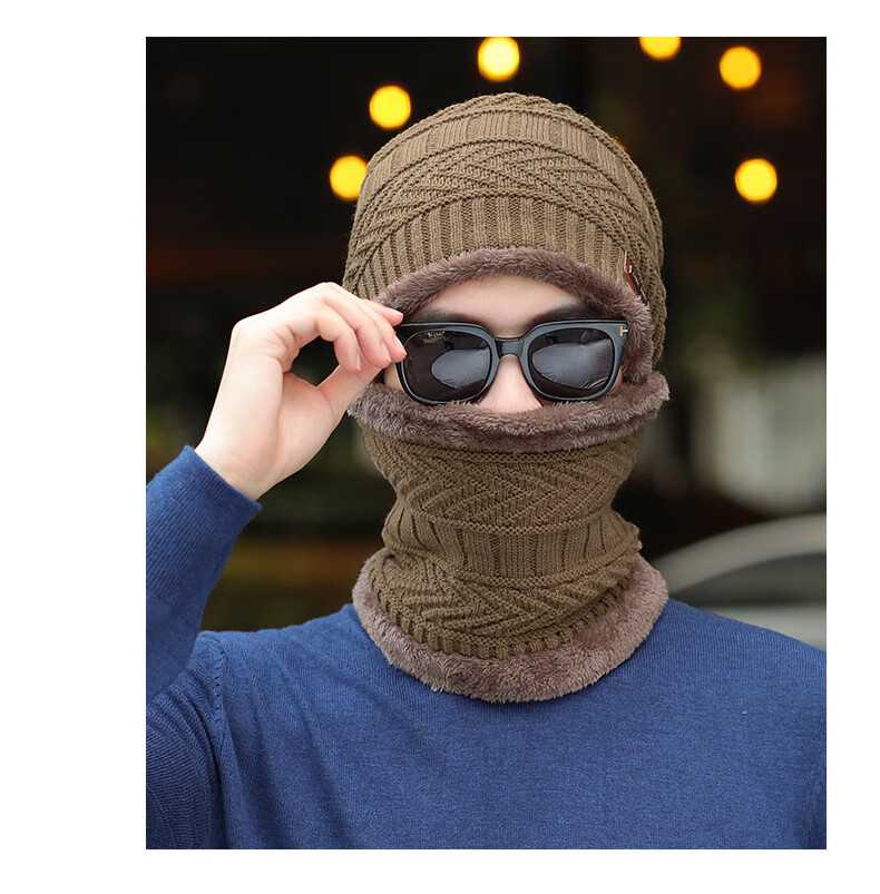 Demi Anissa Hat Men's Autumn and Winter Warm Plus Velvet Thickened Wool Hat Women's Scarf Knitted Hat Outdoor Cycling Coldproof Neck Cover Ear Protection Cotton Lei Feng Hat Set Black One Size