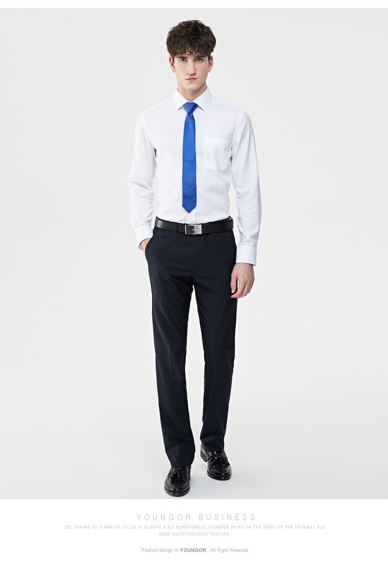 YOUNGOR long-sleeved shirt men's white DP no-iron shirt cotton fabric comfortable, breathable, flat, anti-wrinkle and easy to care for VLDP170001BBA white 41