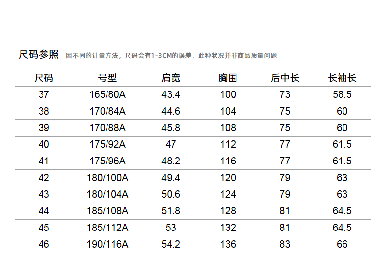 Size (cm) 42 44 46 48 50
