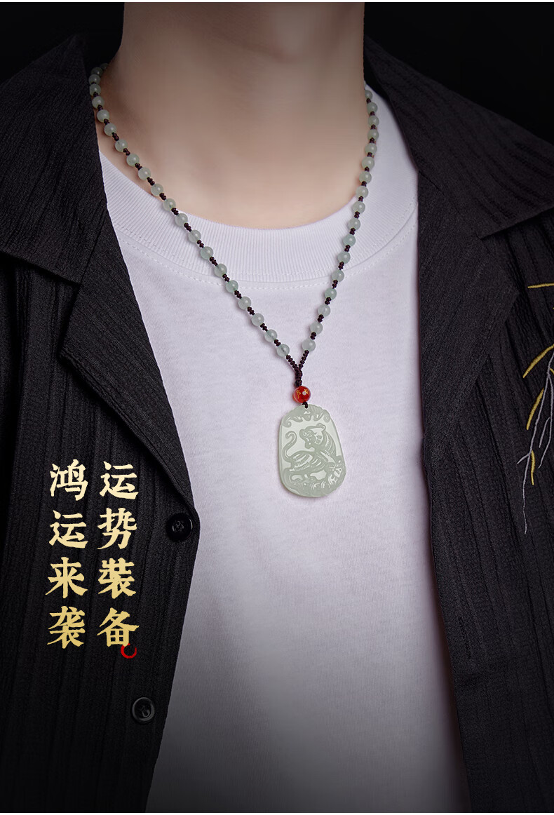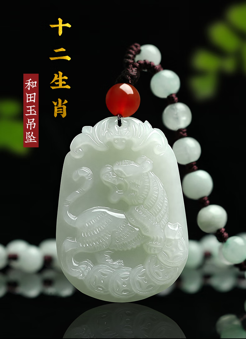 Jinghu Hetian Jade Pendant Male Dragon Year Zodiac Zodiac Protection Natural Jade Pendant Male Holiday Gift Necklace Female Zodiac Tiger