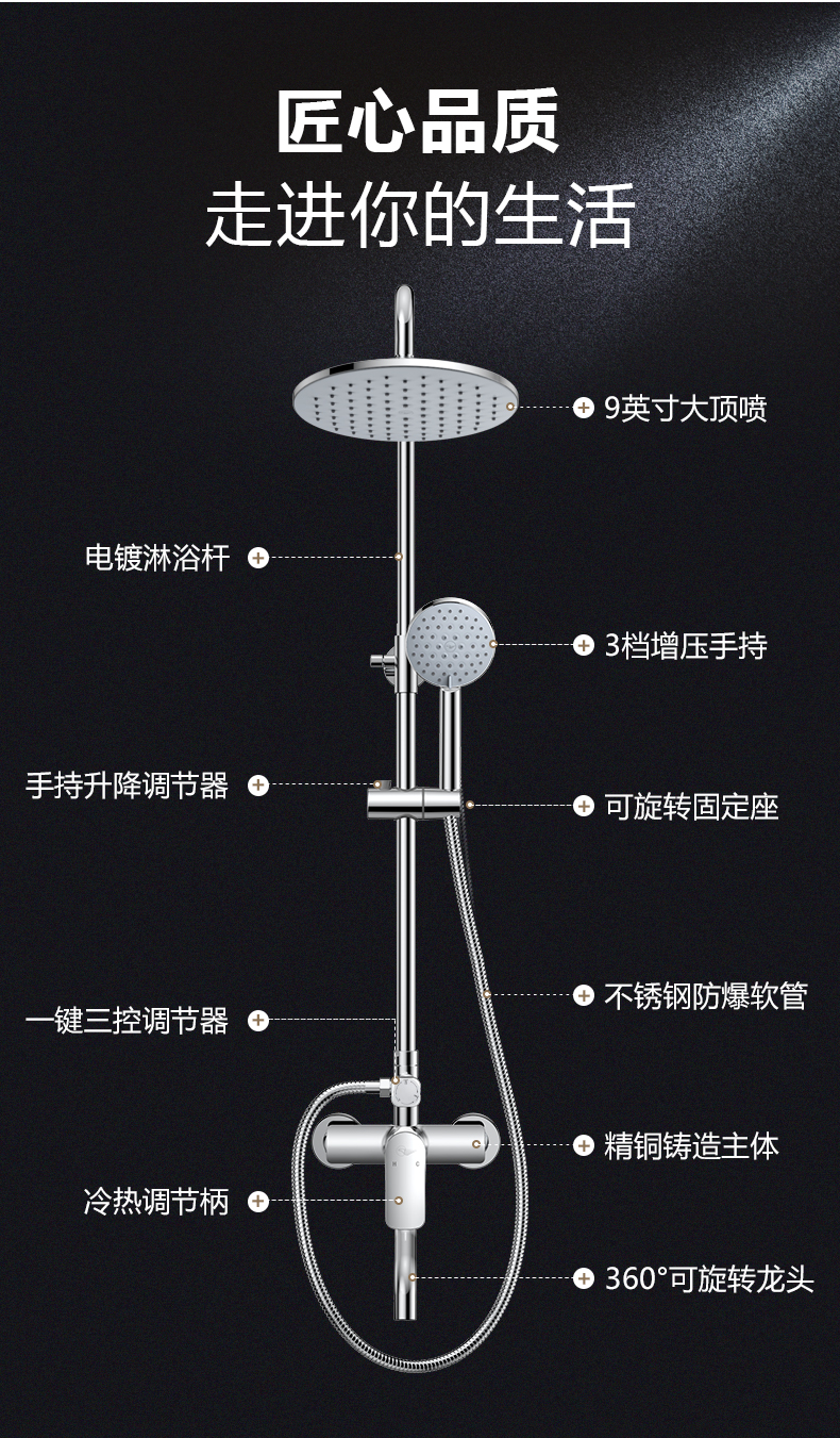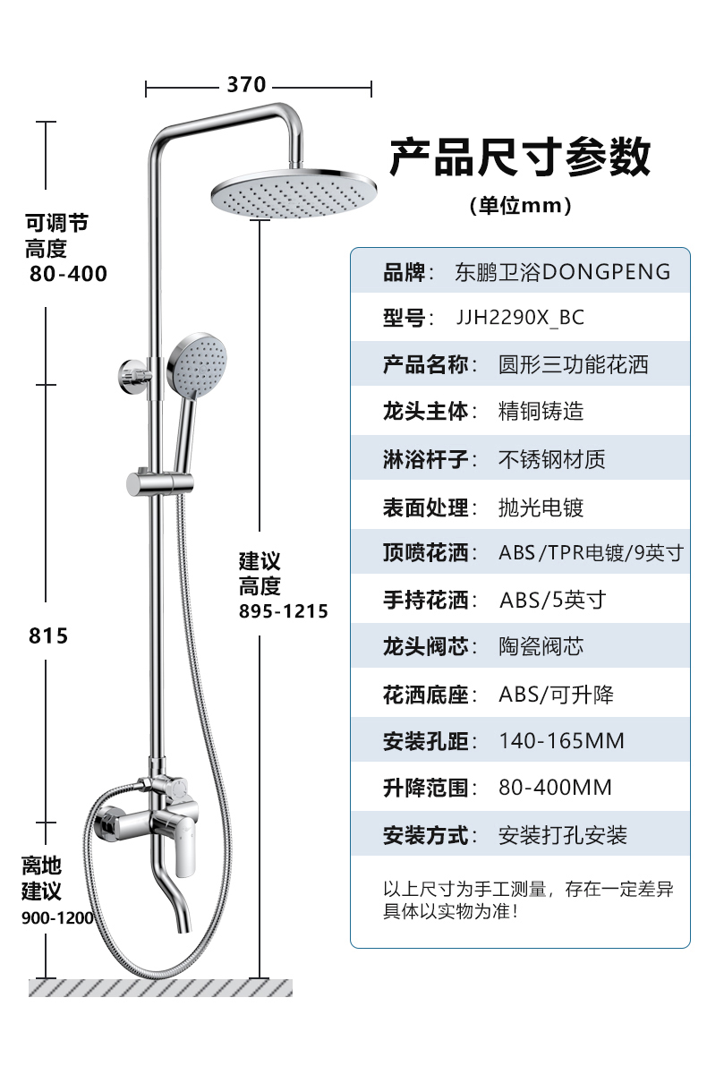 Dongpeng (DONGPENG) shower head complete set of handheld shower head lift shower shower head set three-function shower head