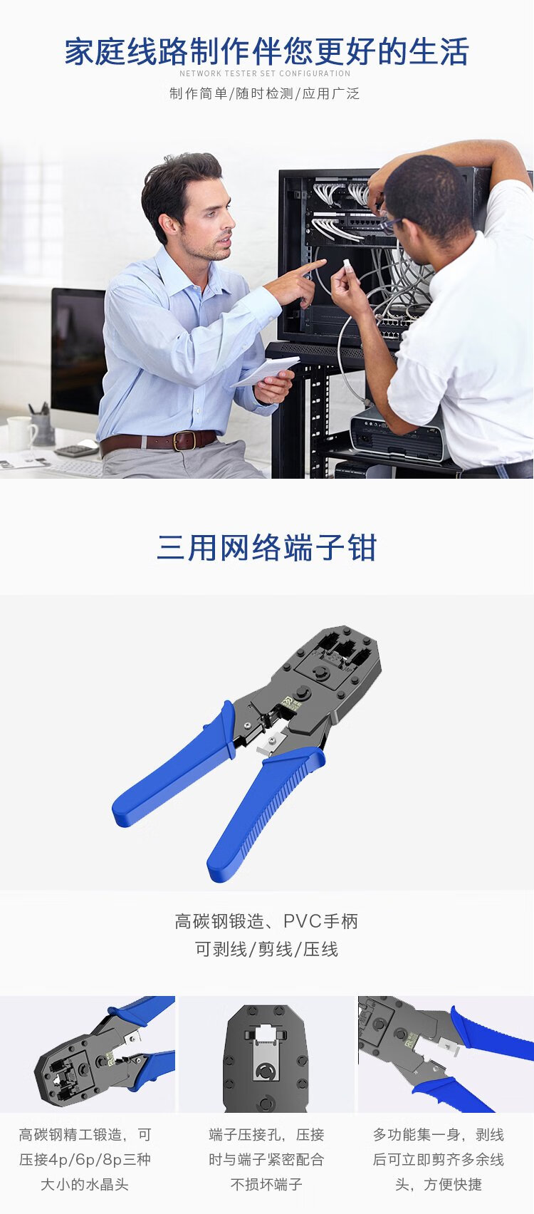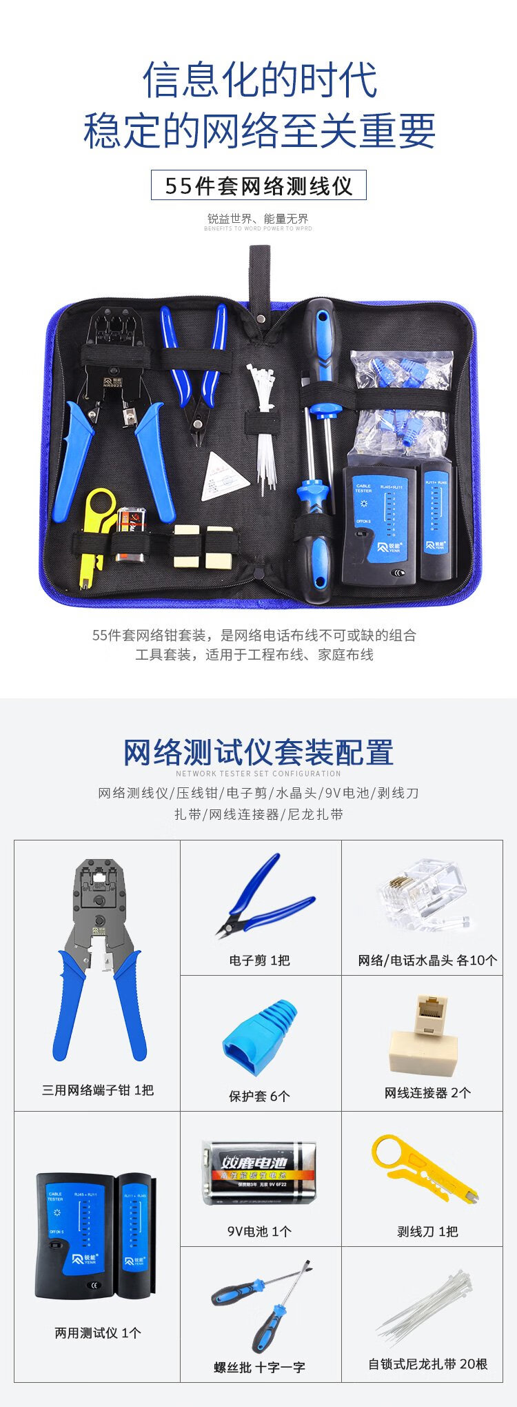 Ruineng network cable pliers, crystal head crimping pliers set, network test line meter, phone computer crimping tool pliers