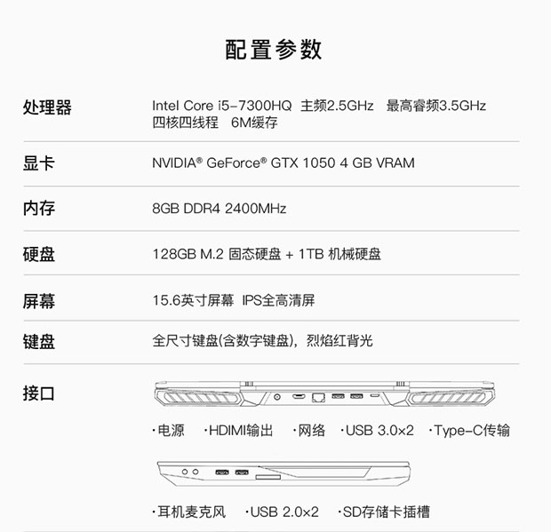 Shinelon T50 15.6-inch gaming laptop (I5-7300HQ 8G 128G+1TB GTX1050 4G independent graphics IPS) Blade