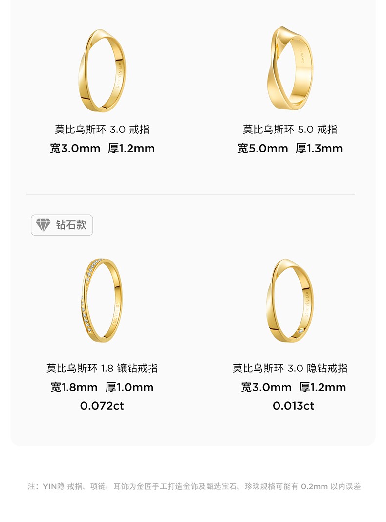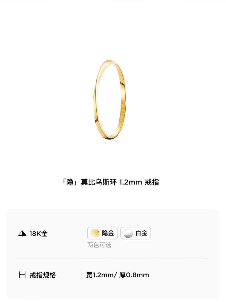 YIN Yin series Möbius strip 1.2 ring 18K gold ring platinum ring 18K gold Yin gold No. 12