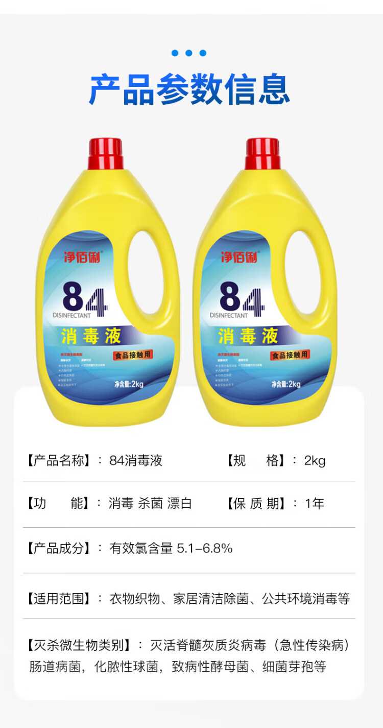 Jingbaili 84 Disinfectant 2KG Home Disinfectant Water Disinfectant Sterilization Toilet Floor Workshop Environmental Cleaning Household 84