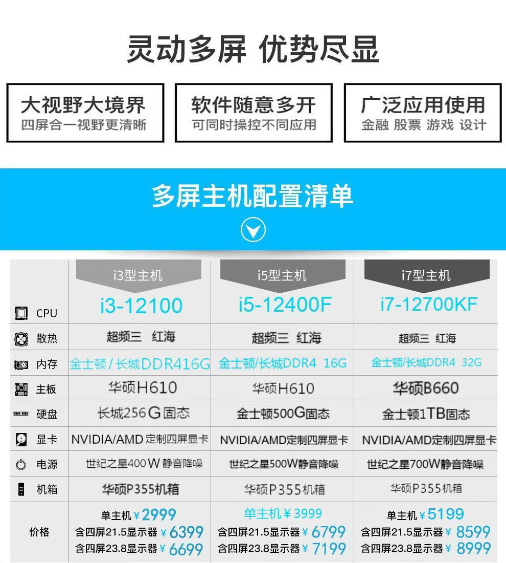 Century Star door-to-door installation ASUS PBA Core stock trading computer four-screen host one machine multi-screen full set of financial foreign exchange securities DIY assembly computer desktop twelfth generation 3 multi-screen host four-screen single host