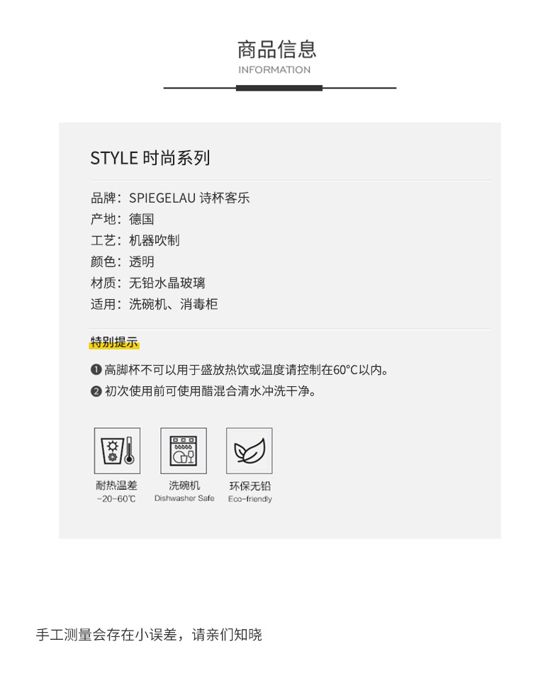 Spiegelau Poetry Cup, German imported red wine glass, non-lead crystal glass, household tall wine glass, flat bottom water glass, Burgundy wine glass 640ml 2 pieces